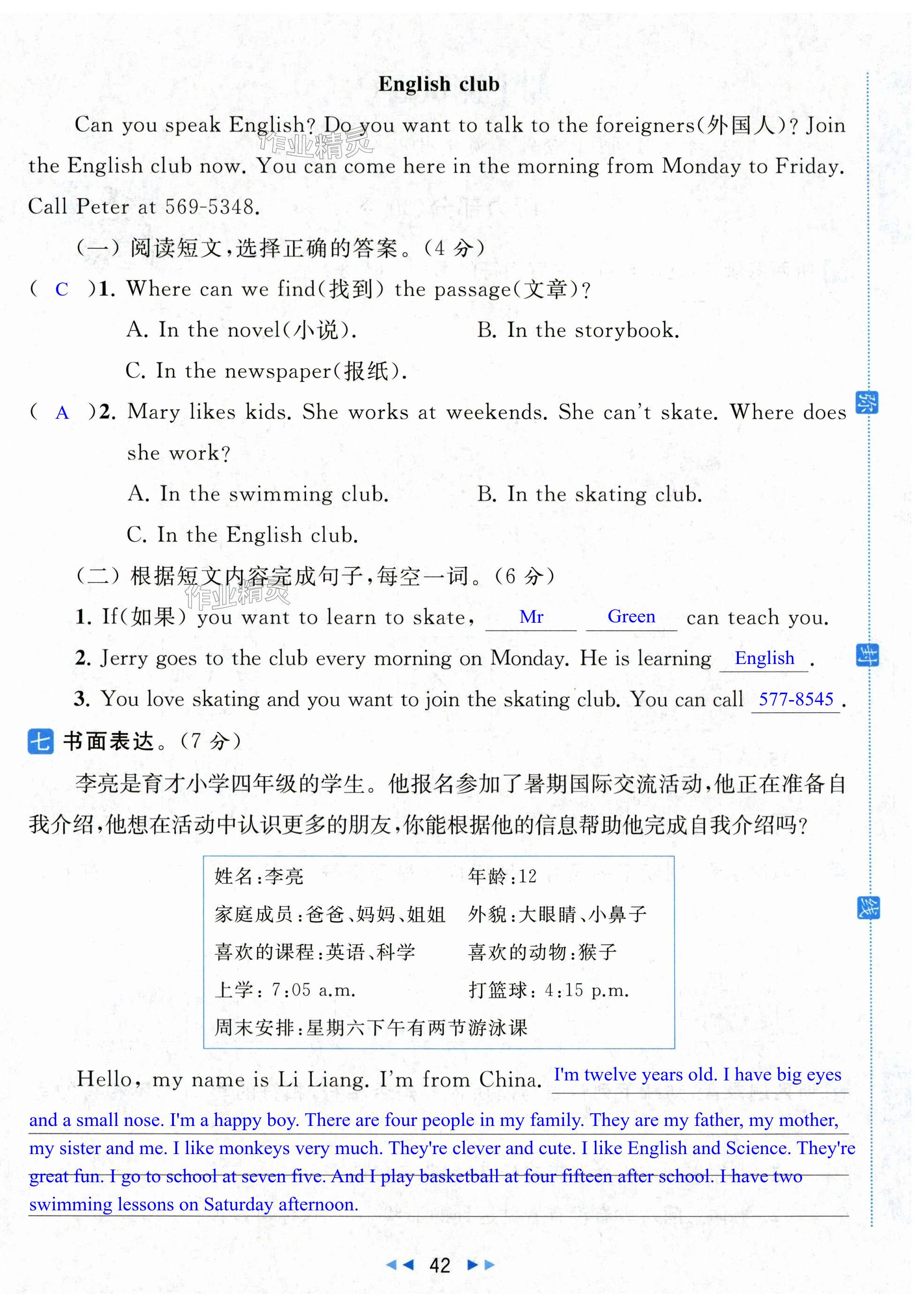 注:目前有些书本章节名称可能整理的还不是很完善,但都是按照顺序排列的,请同学们按照顺序仔细查找。练习册 2024年同步跟踪全程检测四年级英语下册译林版 答案主要是用来给同学们做完题方便对答案用的,请勿直接抄袭。