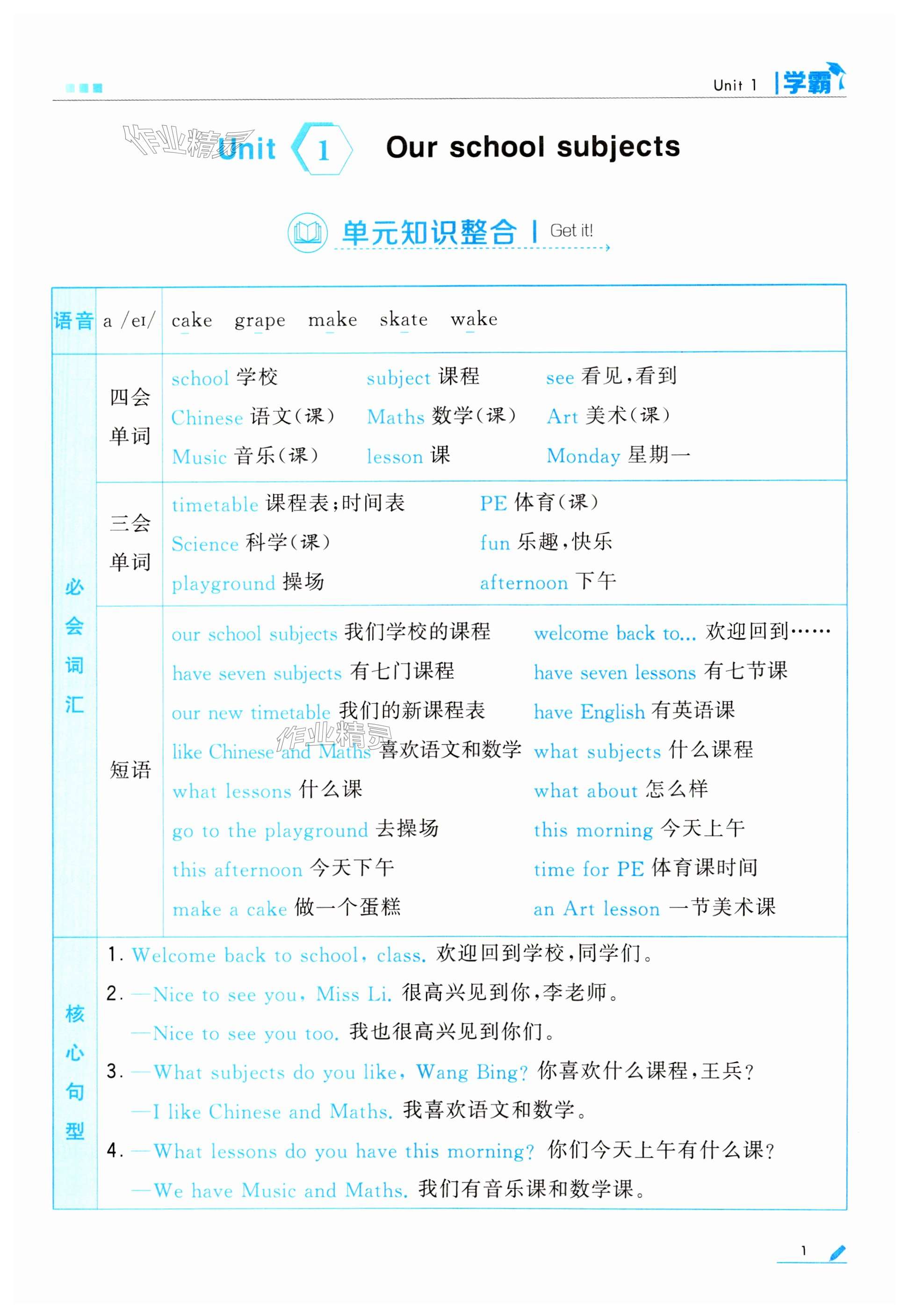 注:目前有些书本章节名称可能整理的还不是很完善,但都是按照顺序排列的,请同学们按照顺序仔细查找。练习册 2024年乔木图书学霸四年级英语下册译林版 答案主要是用来给同学们做完题方便对答案用的,请勿直接抄袭。