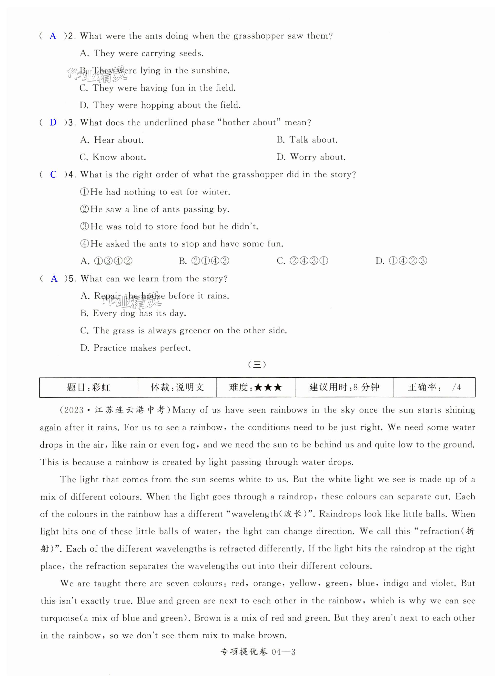 注:目前有些书本章节名称可能整理的还不是很完善,但都是按照顺序排列的,请同学们按照顺序仔细查找。练习册 2024年学霸提优大试卷八年级英语下册译林版 答案主要是用来给同学们做完题方便对答案用的,请勿直接抄袭。