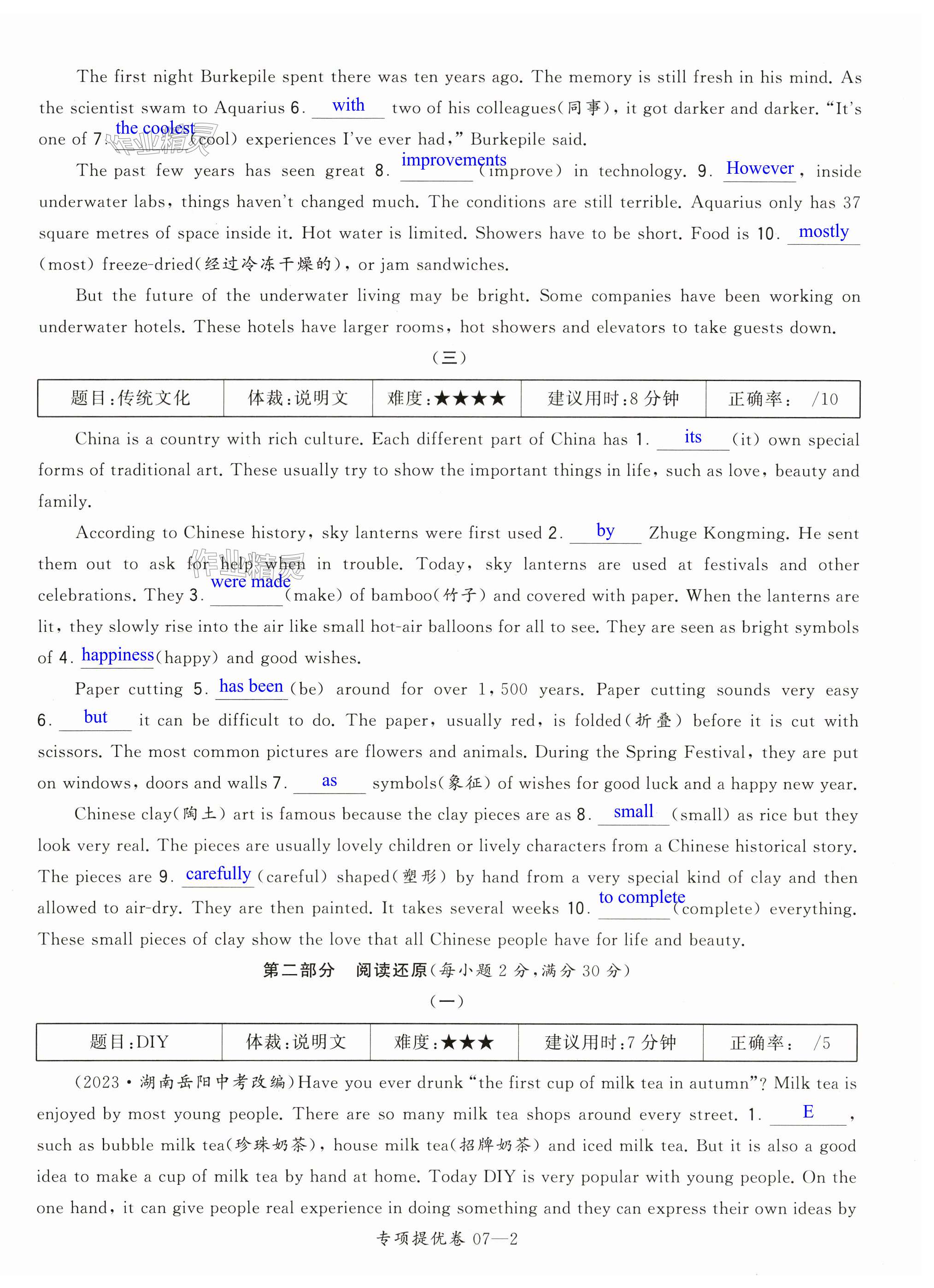 注:目前有些书本章节名称可能整理的还不是很完善,但都是按照顺序排列的,请同学们按照顺序仔细查找。练习册 2024年学霸提优大试卷八年级英语下册译林版 答案主要是用来给同学们做完题方便对答案用的,请勿直接抄袭。