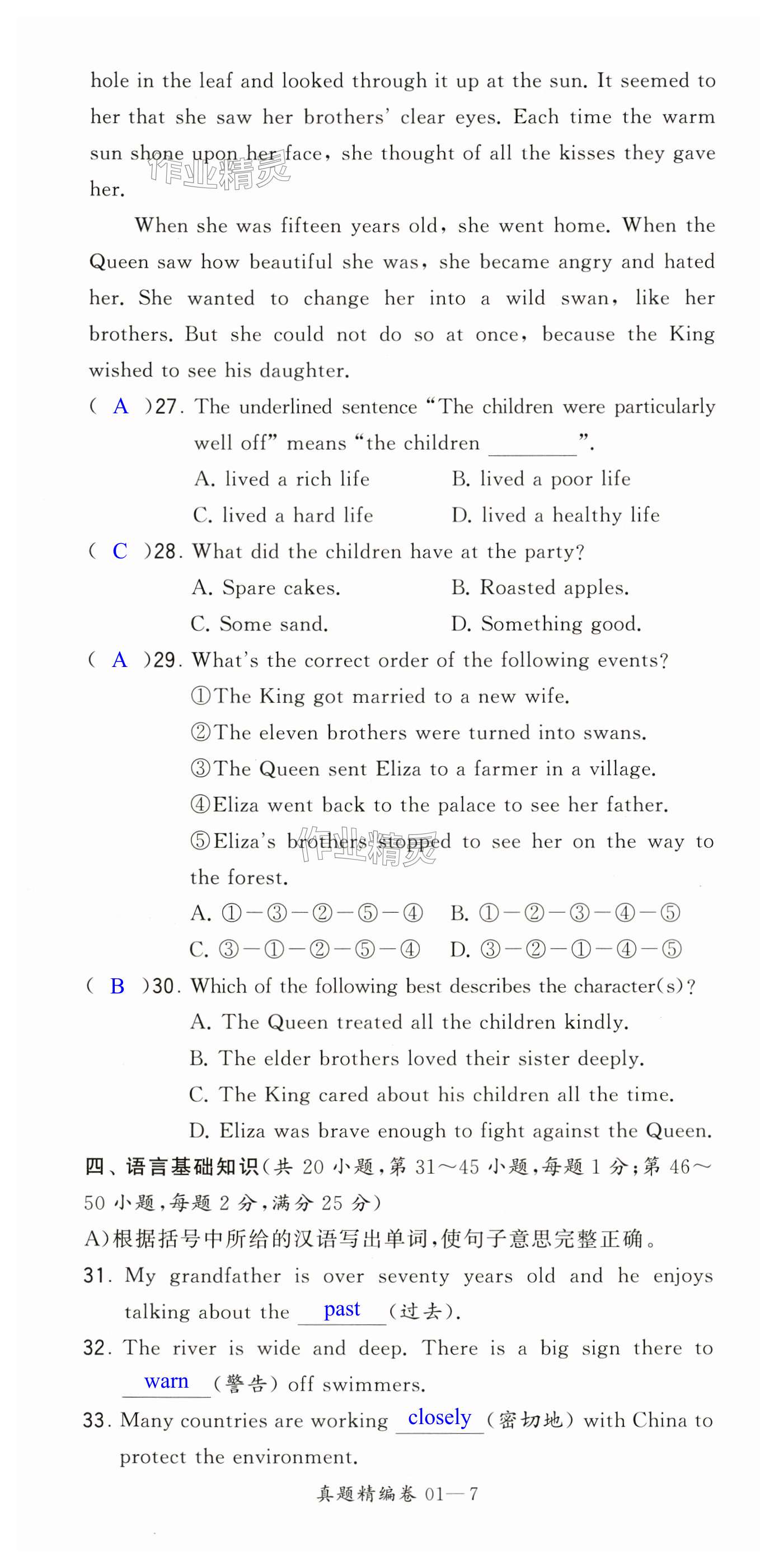 注:目前有些书本章节名称可能整理的还不是很完善,但都是按照顺序排列的,请同学们按照顺序仔细查找。练习册 2024年学霸提优大试卷八年级英语下册译林版 答案主要是用来给同学们做完题方便对答案用的,请勿直接抄袭。