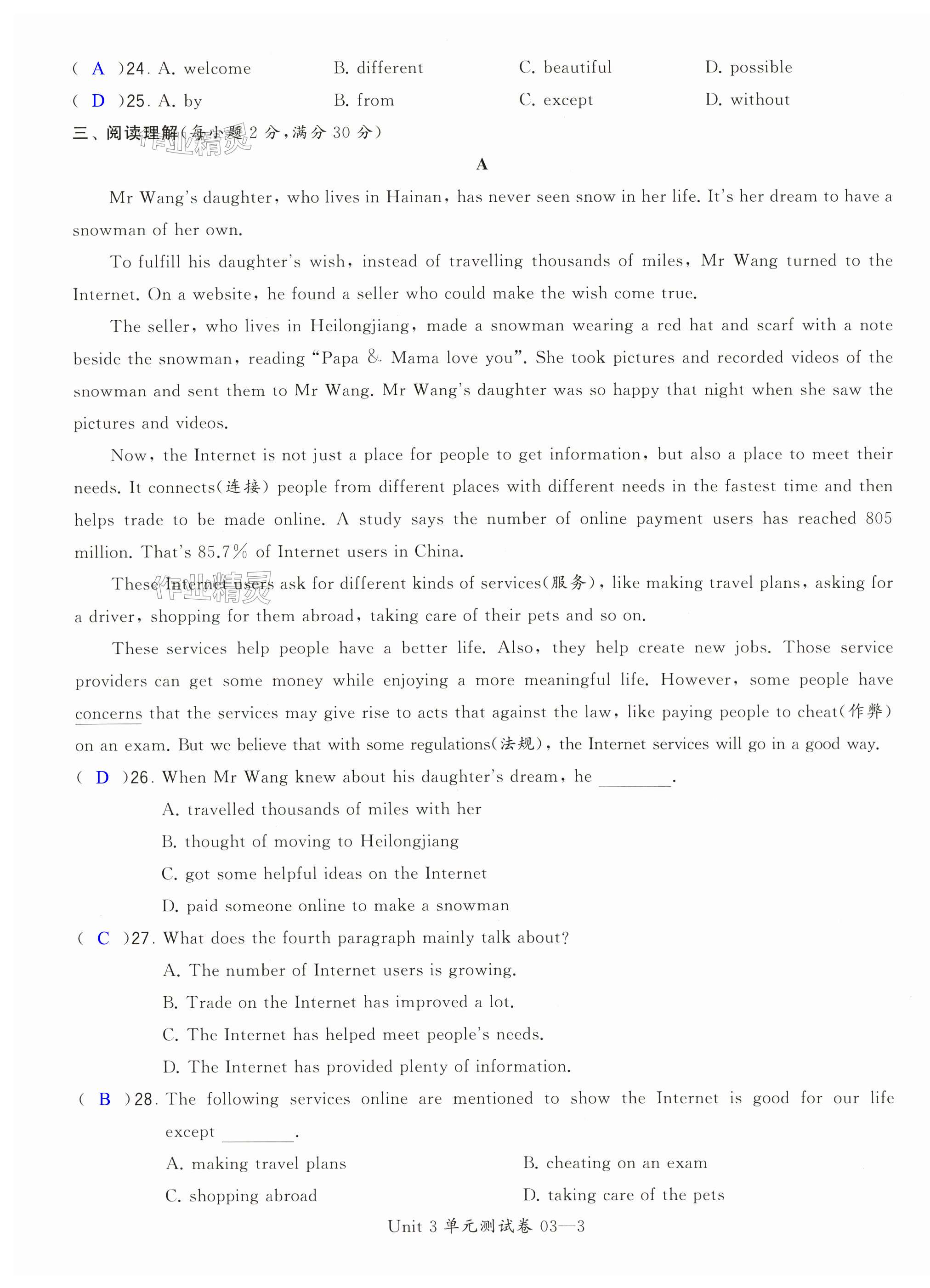注:目前有些书本章节名称可能整理的还不是很完善,但都是按照顺序排列的,请同学们按照顺序仔细查找。练习册 2024年学霸提优大试卷八年级英语下册译林版 答案主要是用来给同学们做完题方便对答案用的,请勿直接抄袭。