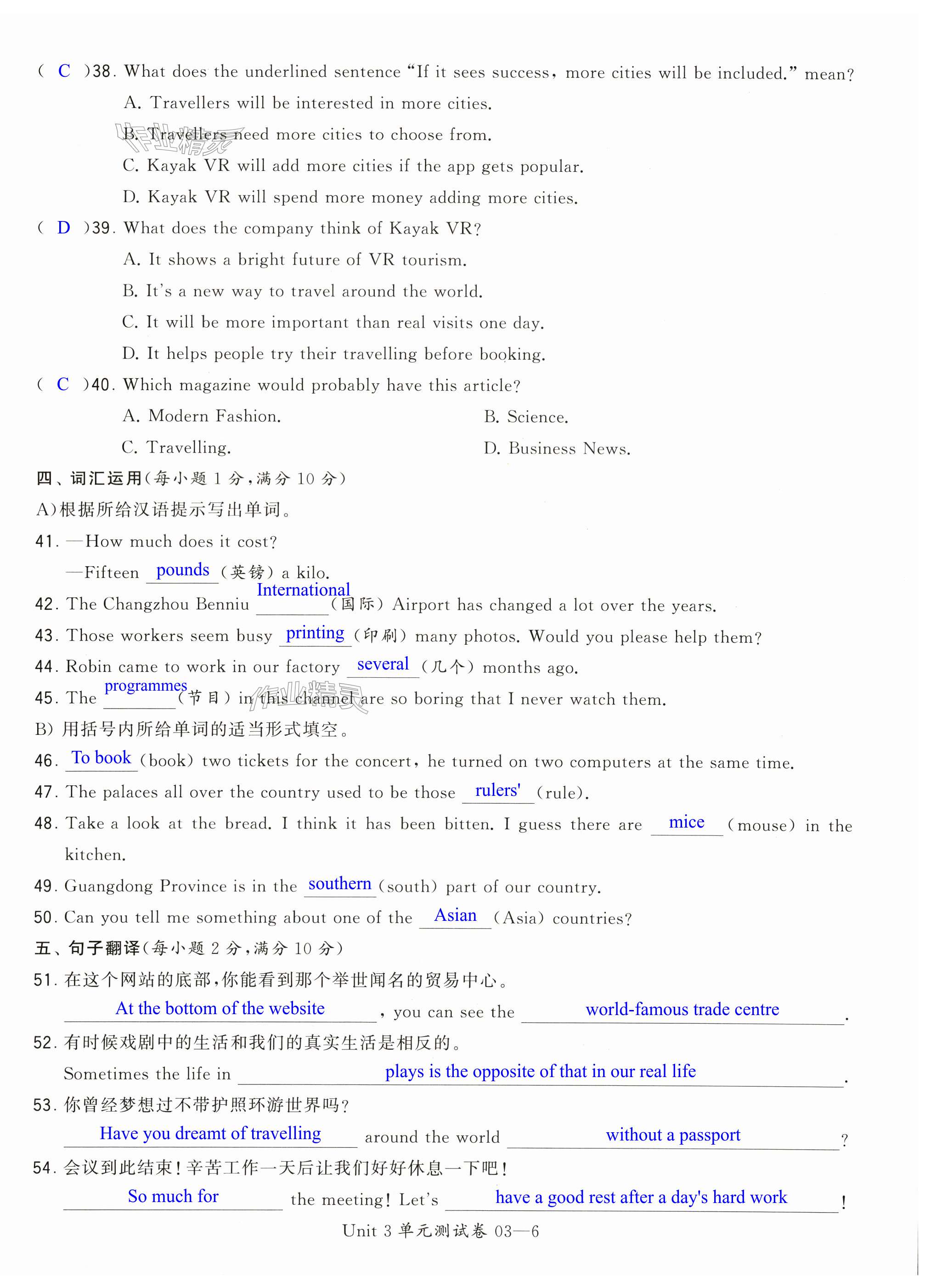 注:目前有些书本章节名称可能整理的还不是很完善,但都是按照顺序排列的,请同学们按照顺序仔细查找。练习册 2024年学霸提优大试卷八年级英语下册译林版 答案主要是用来给同学们做完题方便对答案用的,请勿直接抄袭。