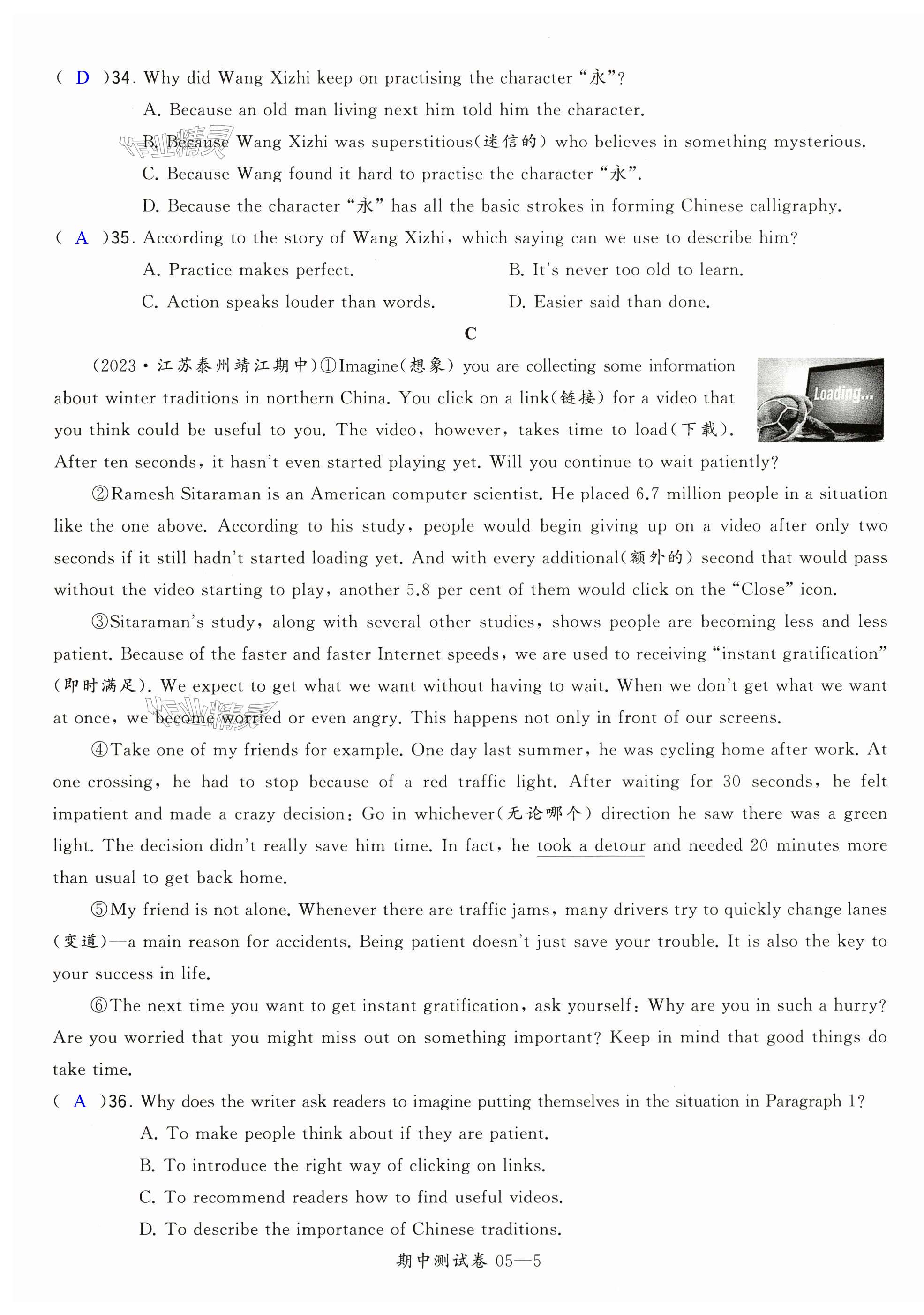 注:目前有些书本章节名称可能整理的还不是很完善,但都是按照顺序排列的,请同学们按照顺序仔细查找。练习册 2024年学霸提优大试卷八年级英语下册译林版 答案主要是用来给同学们做完题方便对答案用的,请勿直接抄袭。
