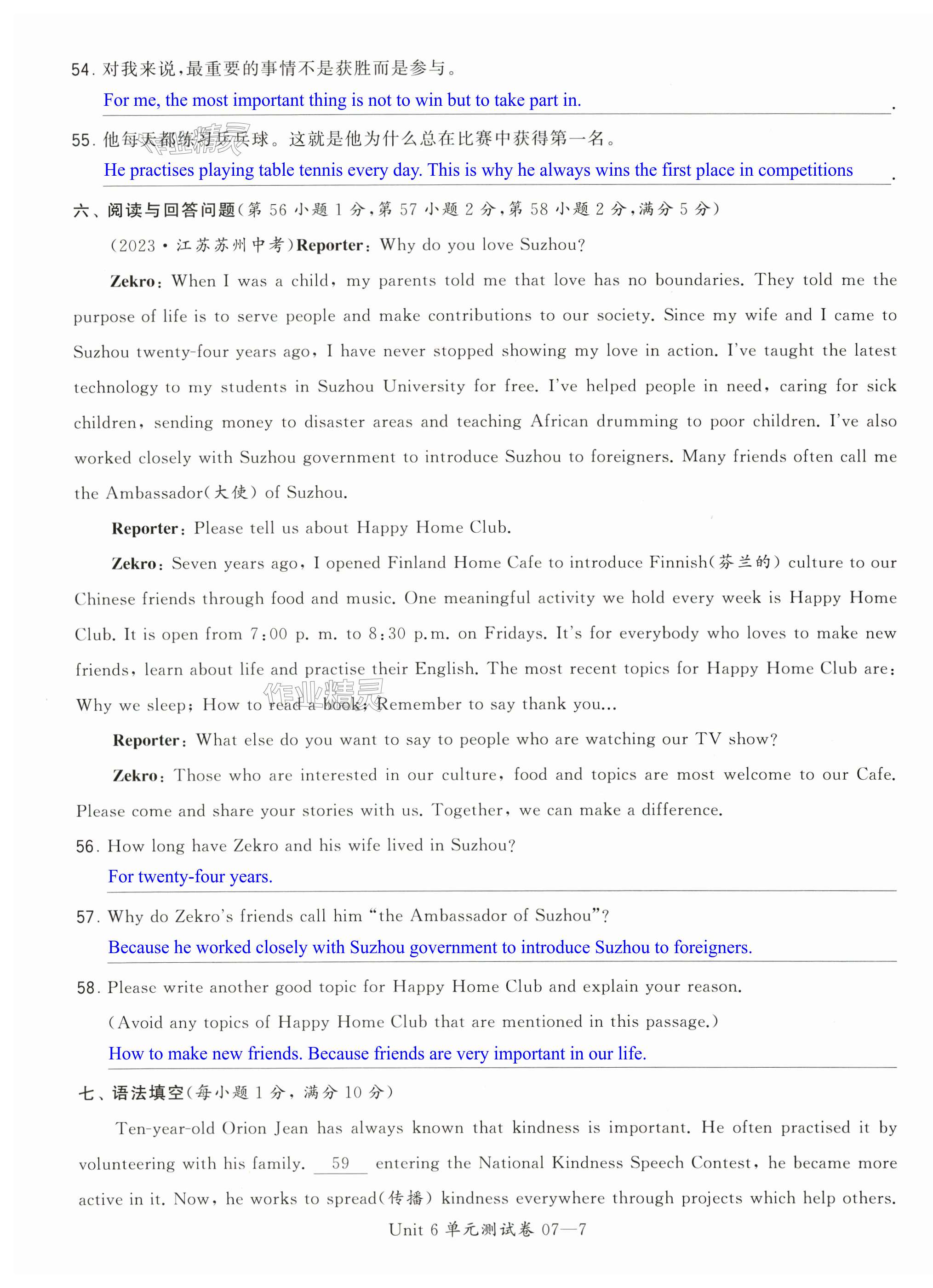 注:目前有些书本章节名称可能整理的还不是很完善,但都是按照顺序排列的,请同学们按照顺序仔细查找。练习册 2024年学霸提优大试卷八年级英语下册译林版 答案主要是用来给同学们做完题方便对答案用的,请勿直接抄袭。