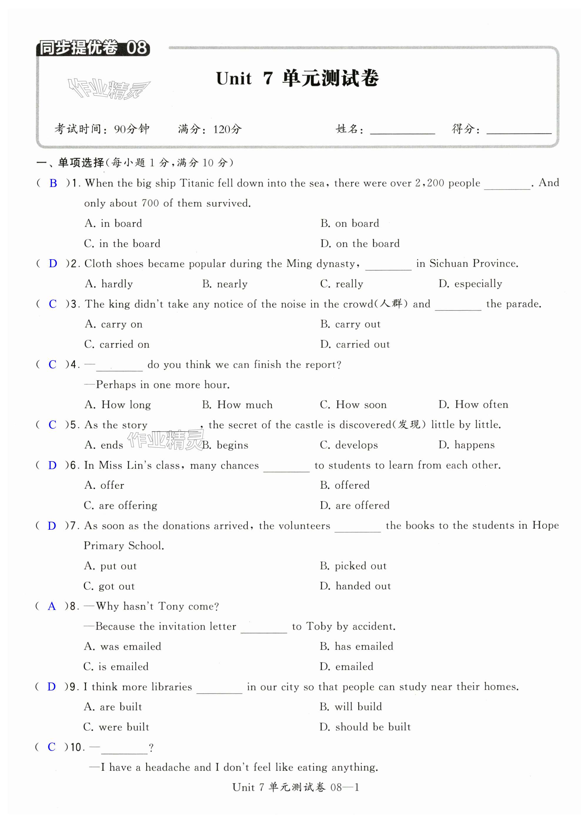 注:目前有些书本章节名称可能整理的还不是很完善,但都是按照顺序排列的,请同学们按照顺序仔细查找。练习册 2024年学霸提优大试卷八年级英语下册译林版 答案主要是用来给同学们做完题方便对答案用的,请勿直接抄袭。