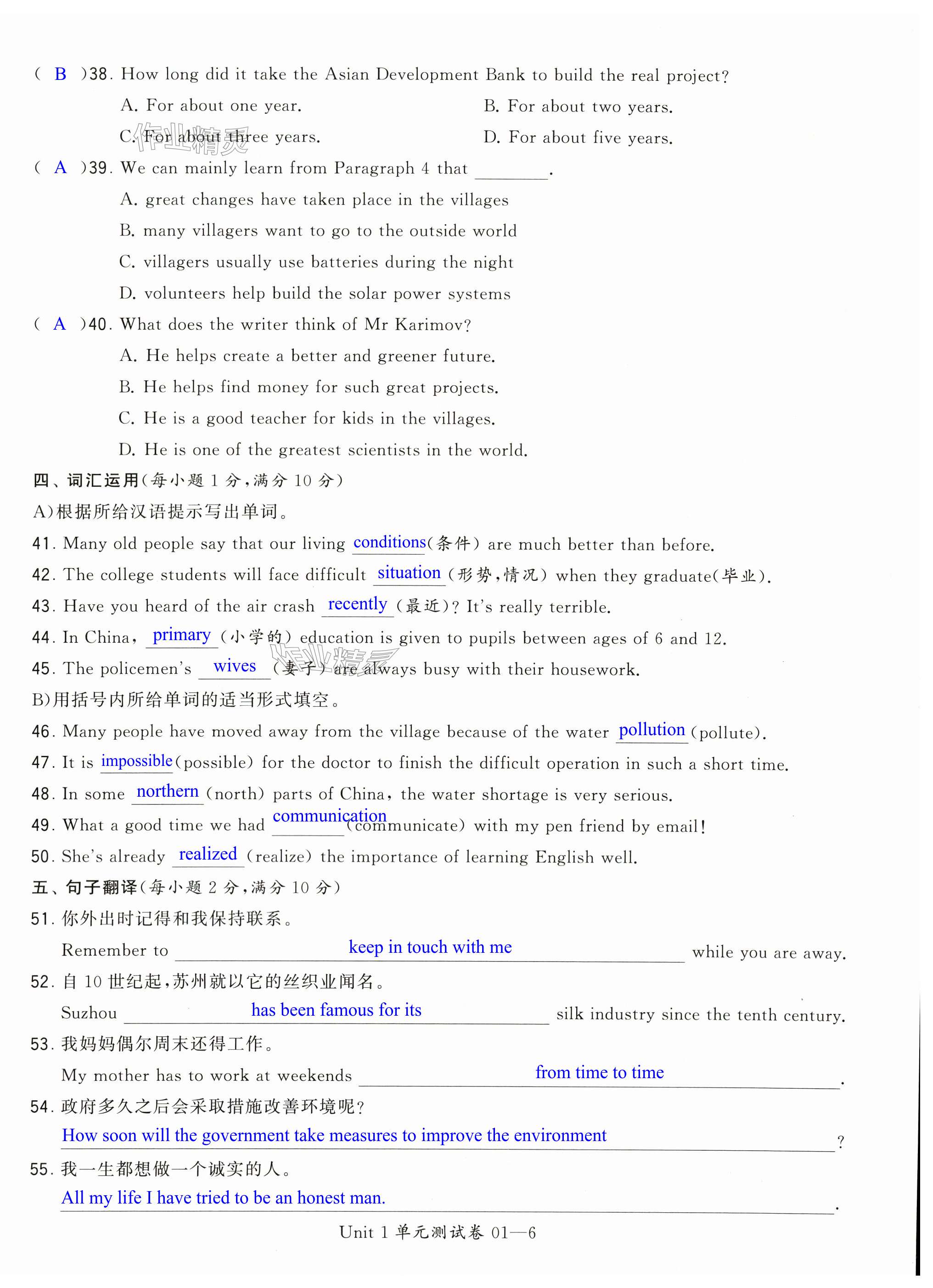 注:目前有些书本章节名称可能整理的还不是很完善,但都是按照顺序排列的,请同学们按照顺序仔细查找。练习册 2024年学霸提优大试卷八年级英语下册译林版 答案主要是用来给同学们做完题方便对答案用的,请勿直接抄袭。
