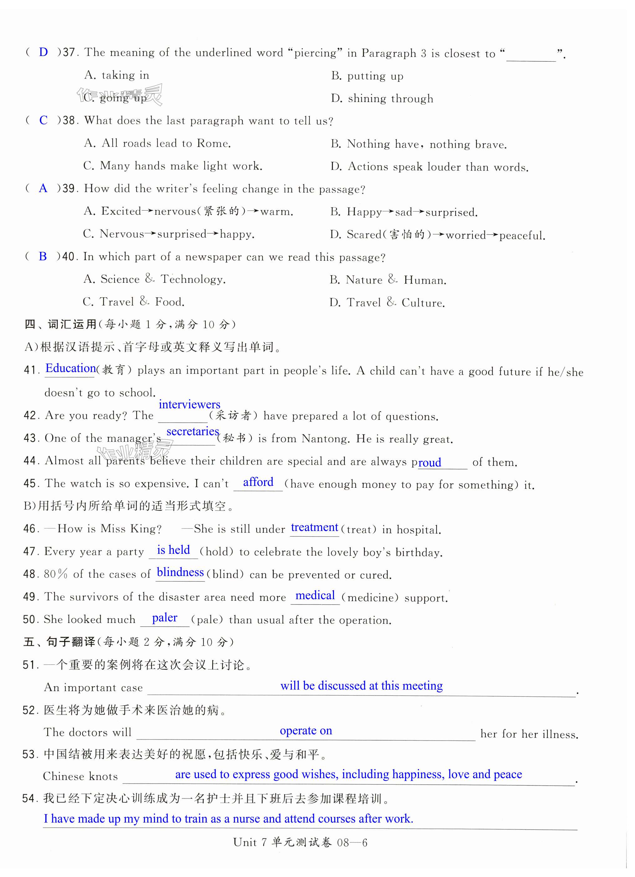 注:目前有些书本章节名称可能整理的还不是很完善,但都是按照顺序排列的,请同学们按照顺序仔细查找。练习册 2024年学霸提优大试卷八年级英语下册译林版 答案主要是用来给同学们做完题方便对答案用的,请勿直接抄袭。