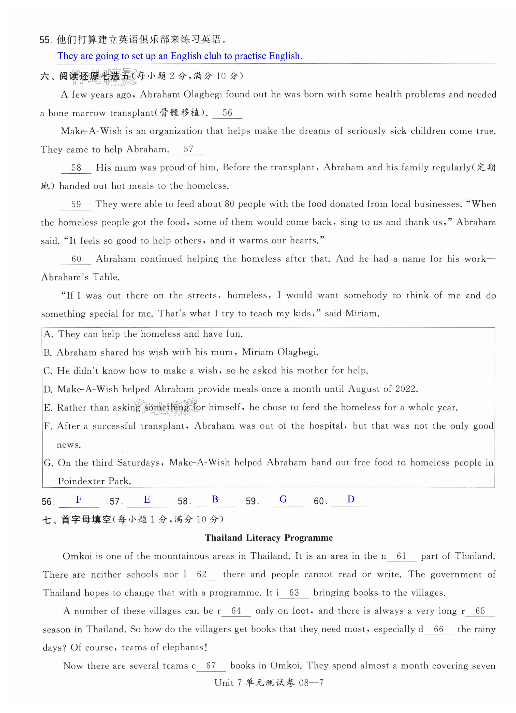 注:目前有些书本章节名称可能整理的还不是很完善,但都是按照顺序排列的,请同学们按照顺序仔细查找。练习册 2024年学霸提优大试卷八年级英语下册译林版 答案主要是用来给同学们做完题方便对答案用的,请勿直接抄袭。
