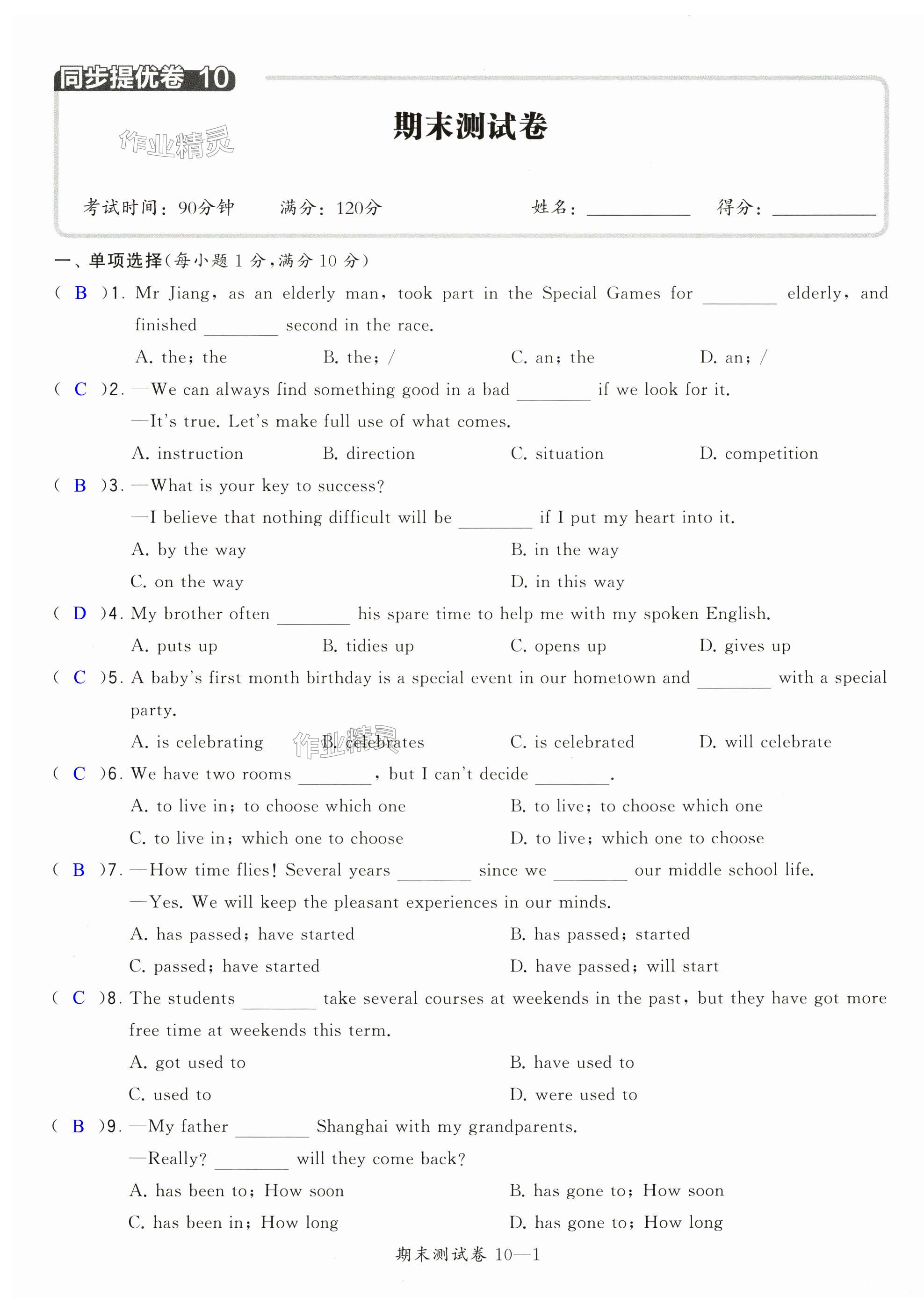 注:目前有些书本章节名称可能整理的还不是很完善,但都是按照顺序排列的,请同学们按照顺序仔细查找。练习册 2024年学霸提优大试卷八年级英语下册译林版 答案主要是用来给同学们做完题方便对答案用的,请勿直接抄袭。