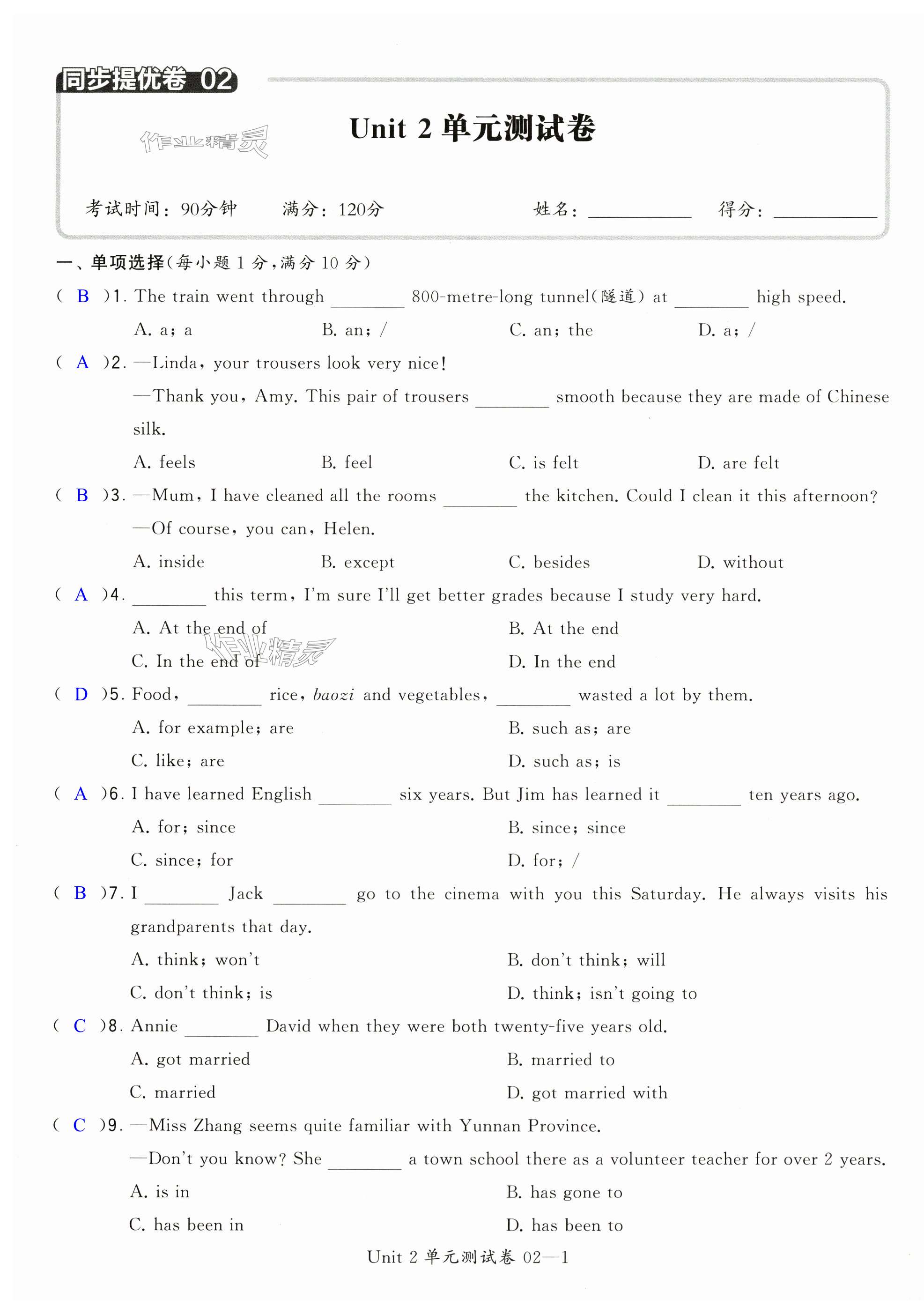 注:目前有些书本章节名称可能整理的还不是很完善,但都是按照顺序排列的,请同学们按照顺序仔细查找。练习册 2024年学霸提优大试卷八年级英语下册译林版 答案主要是用来给同学们做完题方便对答案用的,请勿直接抄袭。