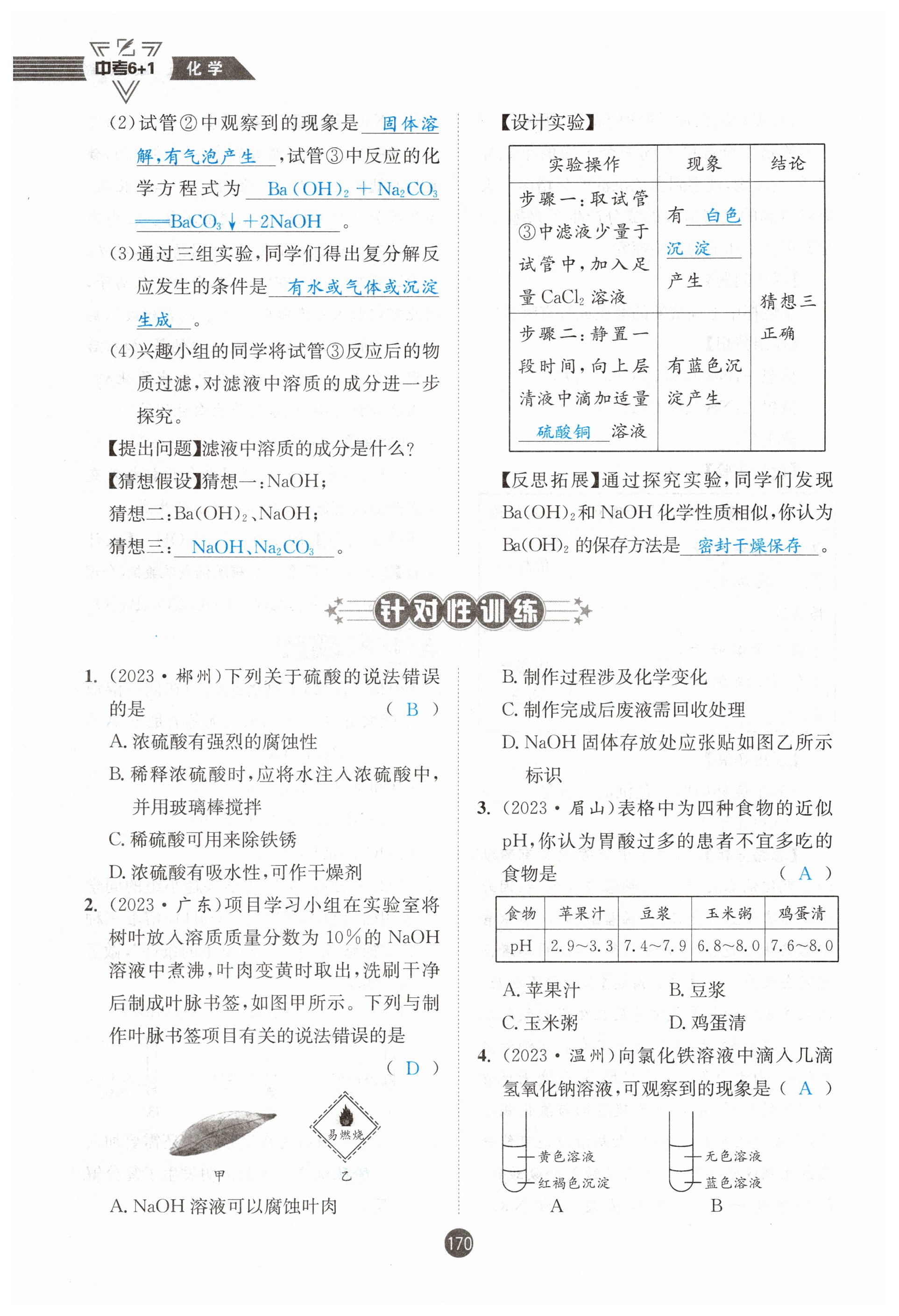 注:目前有些书本章节名称可能整理的还不是很完善,但都是按照顺序排列的,请同学们按照顺序仔细查找。练习册 2024年中考6加1化学鲁教版达州专版 答案主要是用来给同学们做完题方便对答案用的,请勿直接抄袭。