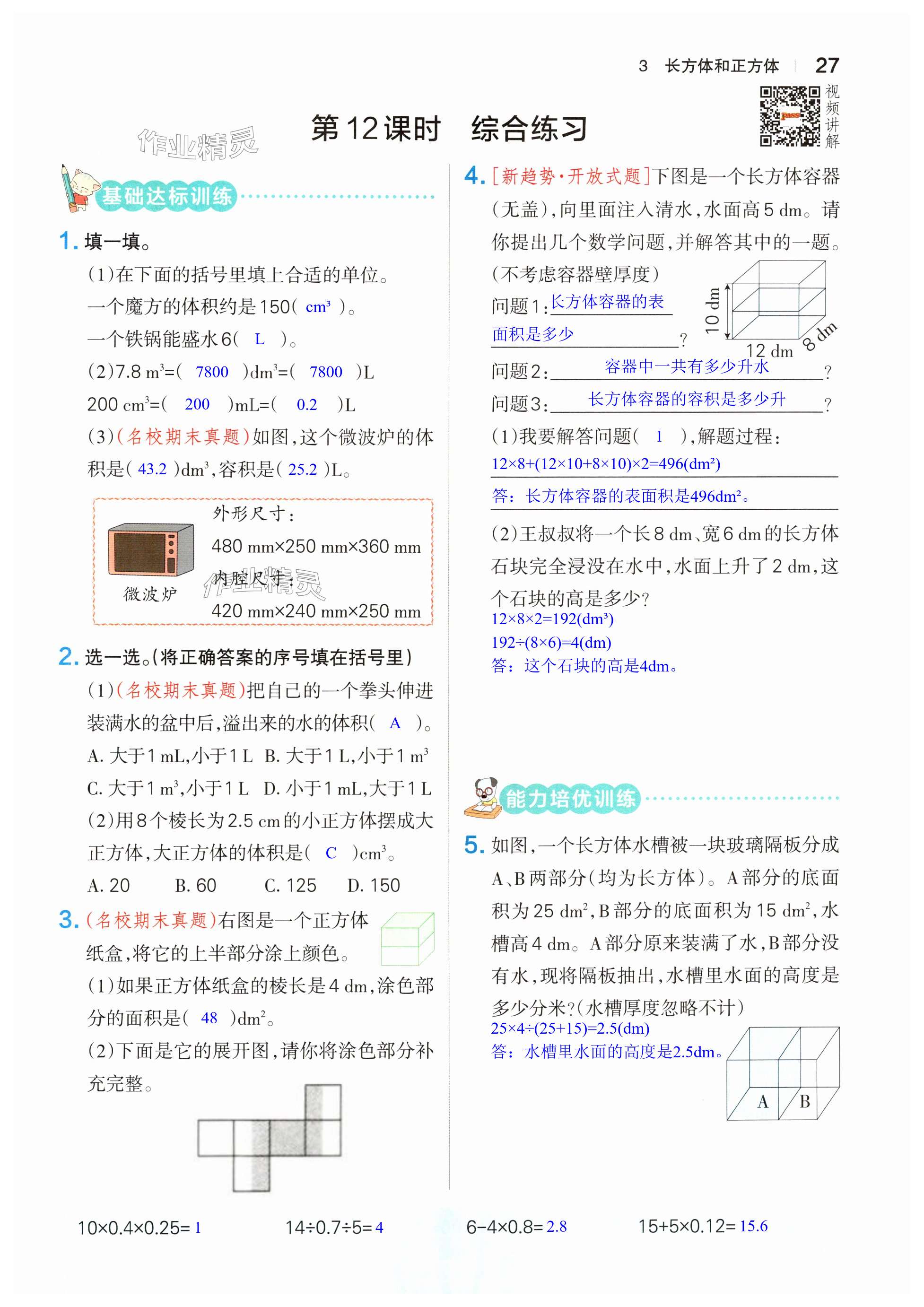 注:目前有些书本章节名称可能整理的还不是很完善,但都是按照顺序排列的,请同学们按照顺序仔细查找。练习册 2024年小学学霸作业本五年级数学下册人教版 答案主要是用来给同学们做完题方便对答案用的,请勿直接抄袭。