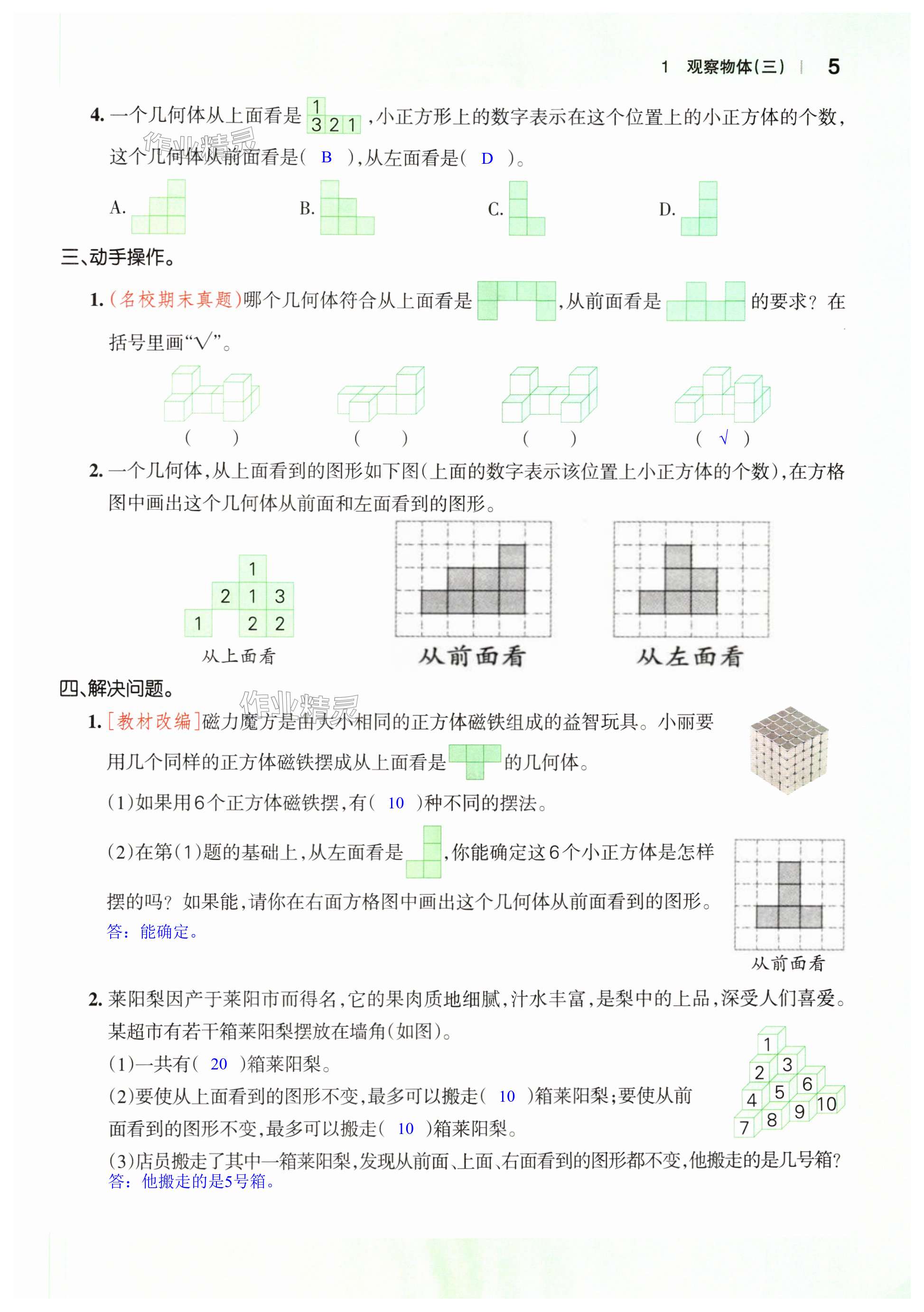 注:目前有些书本章节名称可能整理的还不是很完善,但都是按照顺序排列的,请同学们按照顺序仔细查找。练习册 2024年小学学霸作业本五年级数学下册人教版 答案主要是用来给同学们做完题方便对答案用的,请勿直接抄袭。