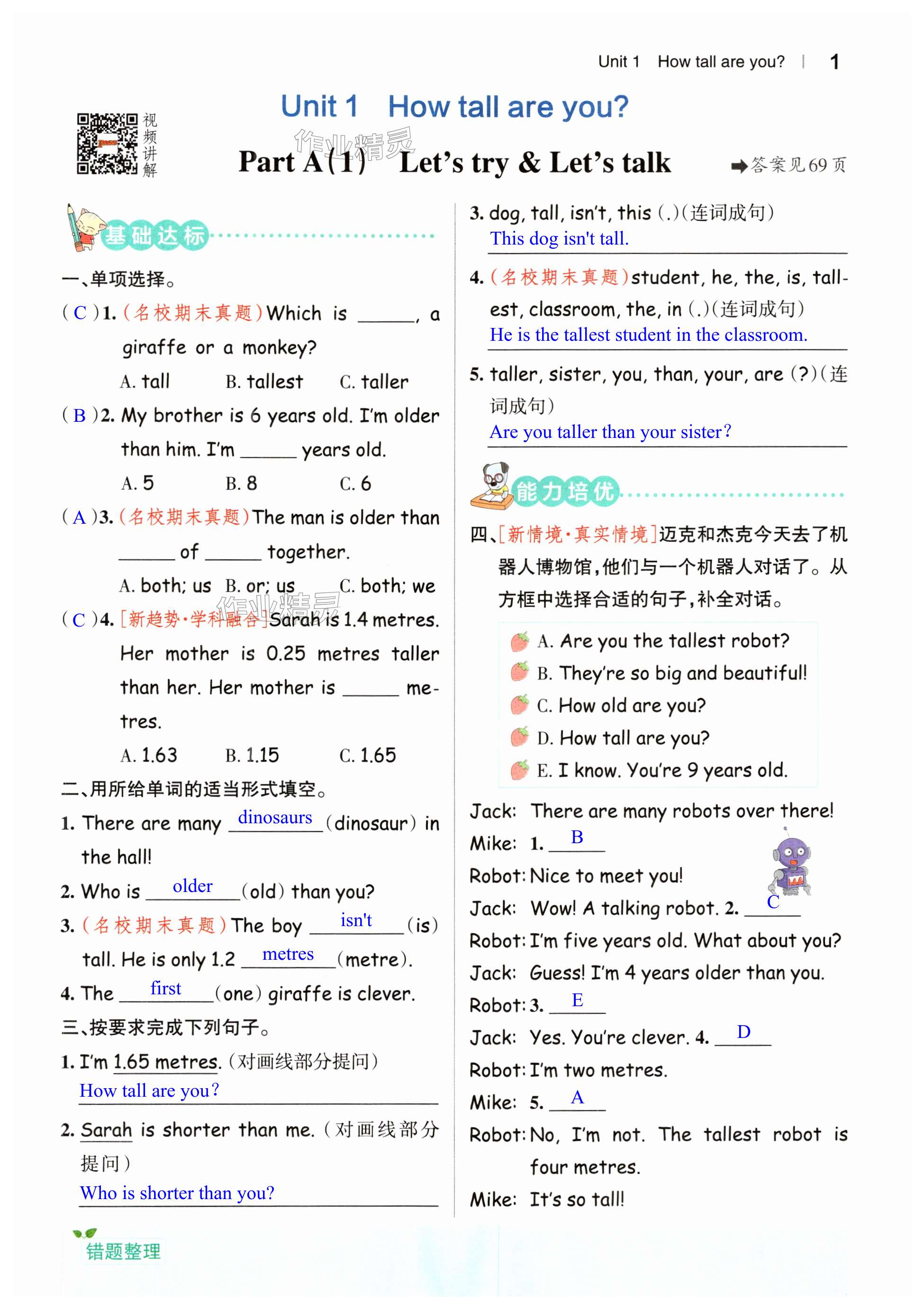 注:目前有些书本章节名称可能整理的还不是很完善,但都是按照顺序排列的,请同学们按照顺序仔细查找。练习册 2024年小学学霸作业本六年级英语下册人教版 答案主要是用来给同学们做完题方便对答案用的,请勿直接抄袭。
