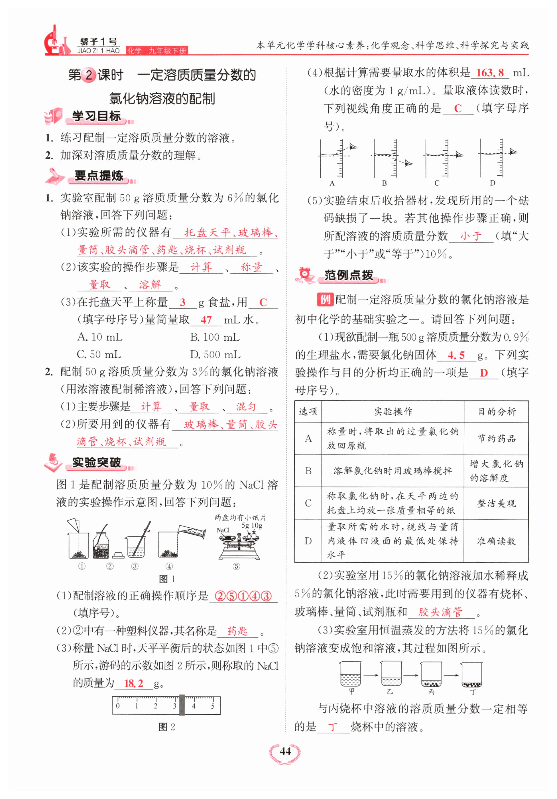 注:目前有些书本章节名称可能整理的还不是很完善,但都是按照顺序排列的,请同学们按照顺序仔细查找。练习册 2024年骄子1号九年级化学下册人教版 答案主要是用来给同学们做完题方便对答案用的,请勿直接抄袭。