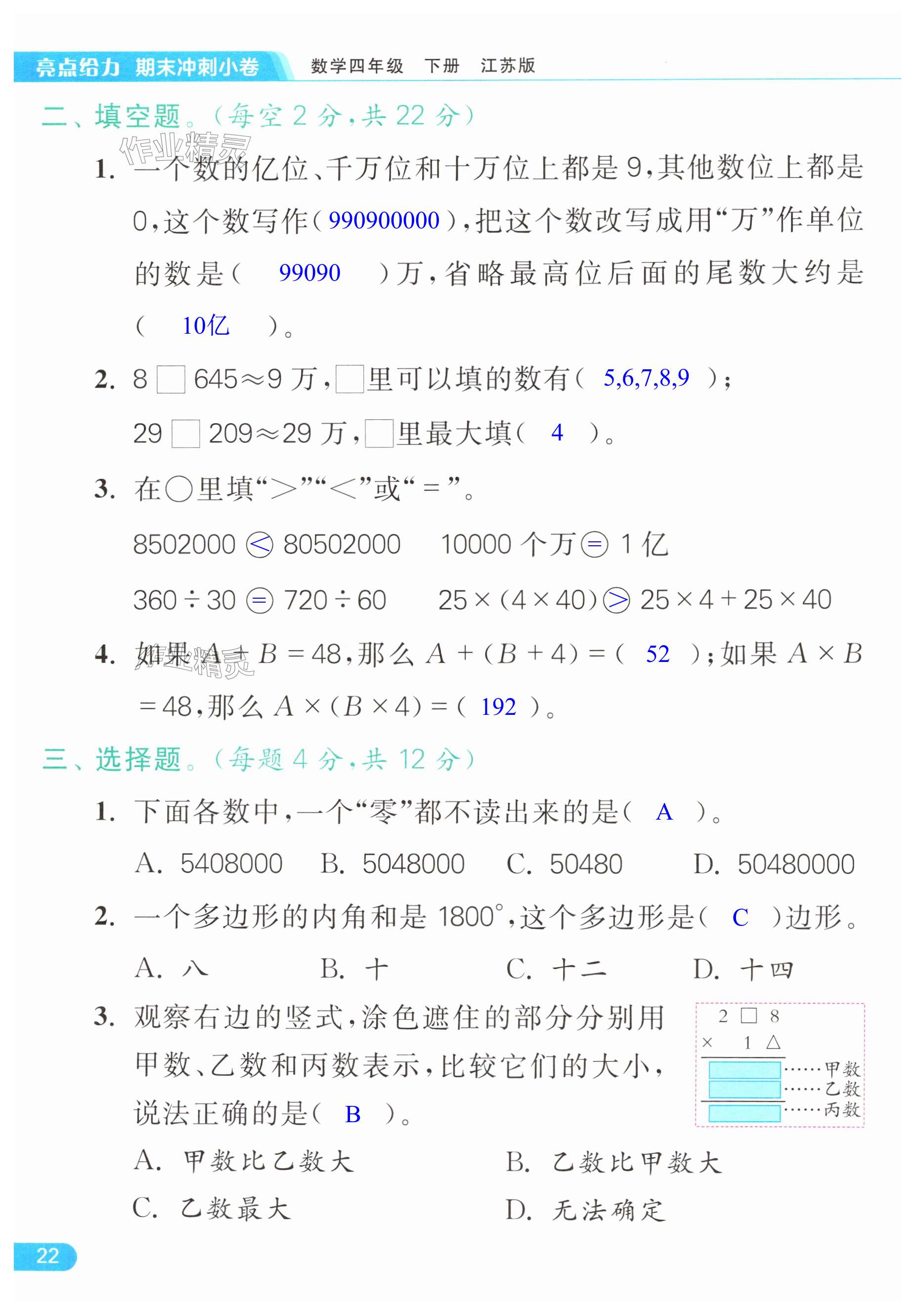 注:目前有些书本章节名称可能整理的还不是很完善,但都是按照顺序排列的,请同学们按照顺序仔细查找。练习册 2024年亮点给力计算天天练四年级数学下册苏教版 答案主要是用来给同学们做完题方便对答案用的,请勿直接抄袭。