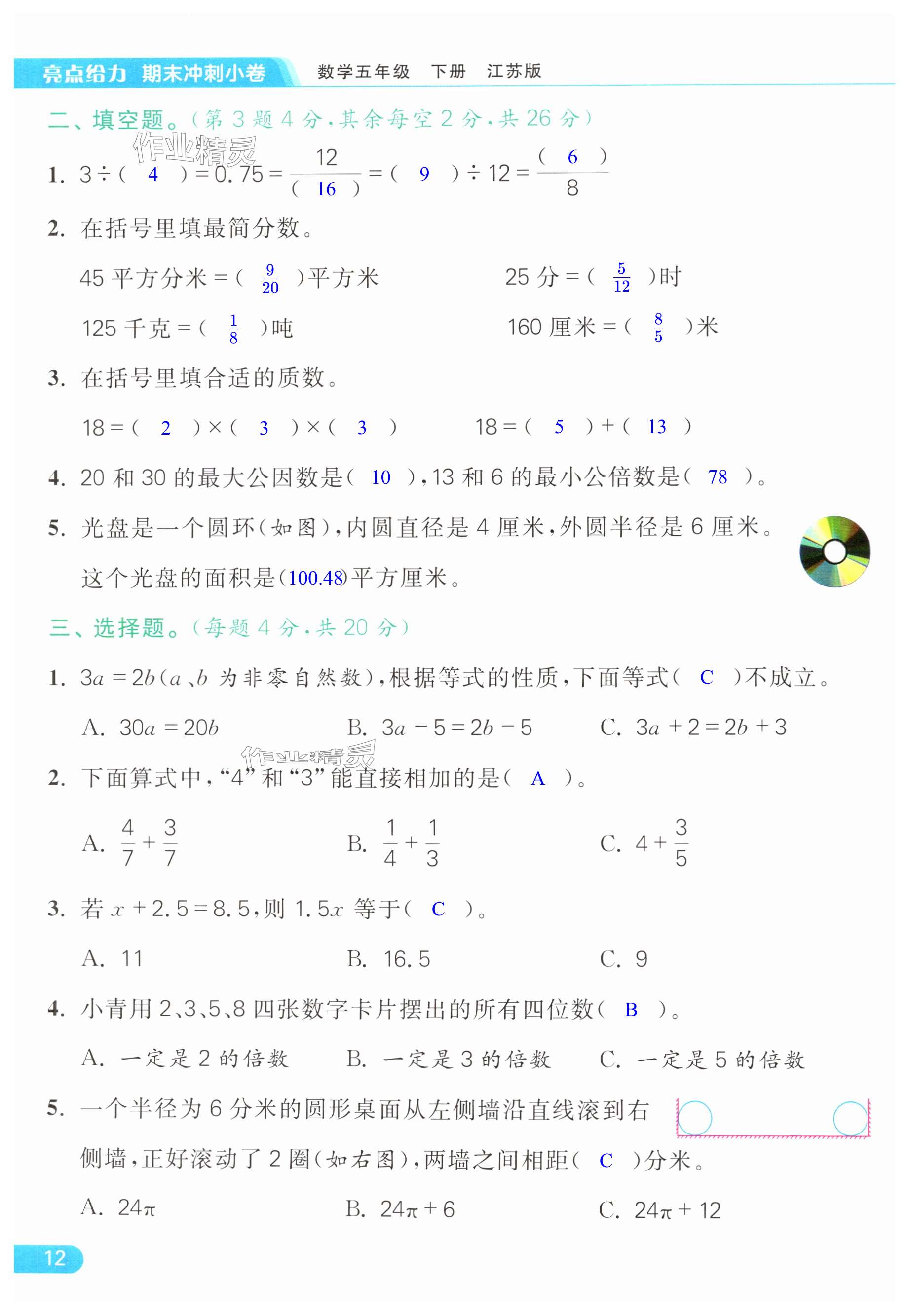 注:目前有些书本章节名称可能整理的还不是很完善,但都是按照顺序排列的,请同学们按照顺序仔细查找。练习册 2024年亮点给力计算天天练五年级数学下册苏教版 答案主要是用来给同学们做完题方便对答案用的,请勿直接抄袭。