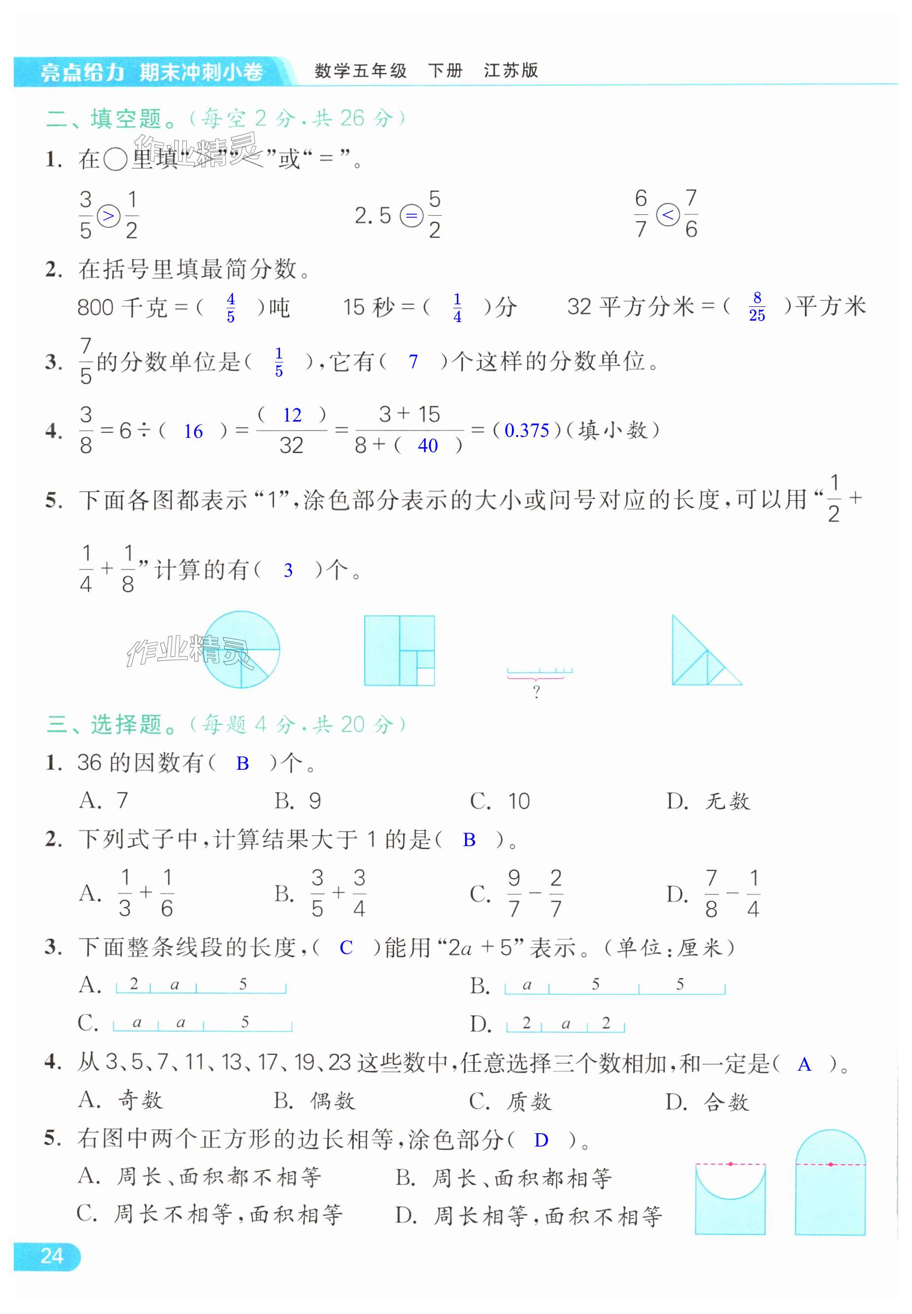 注:目前有些书本章节名称可能整理的还不是很完善,但都是按照顺序排列的,请同学们按照顺序仔细查找。练习册 2024年亮点给力计算天天练五年级数学下册苏教版 答案主要是用来给同学们做完题方便对答案用的,请勿直接抄袭。