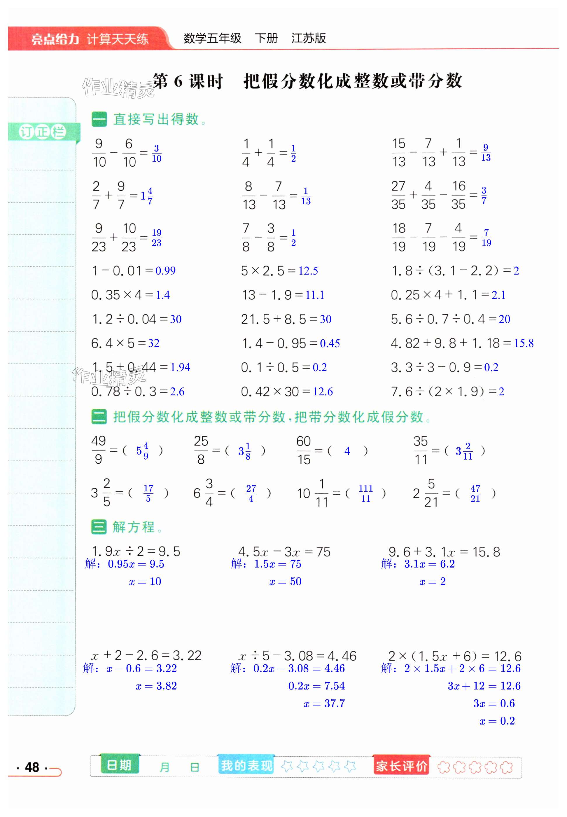2024年亮点给力计算天天练五年级数学下册苏教版