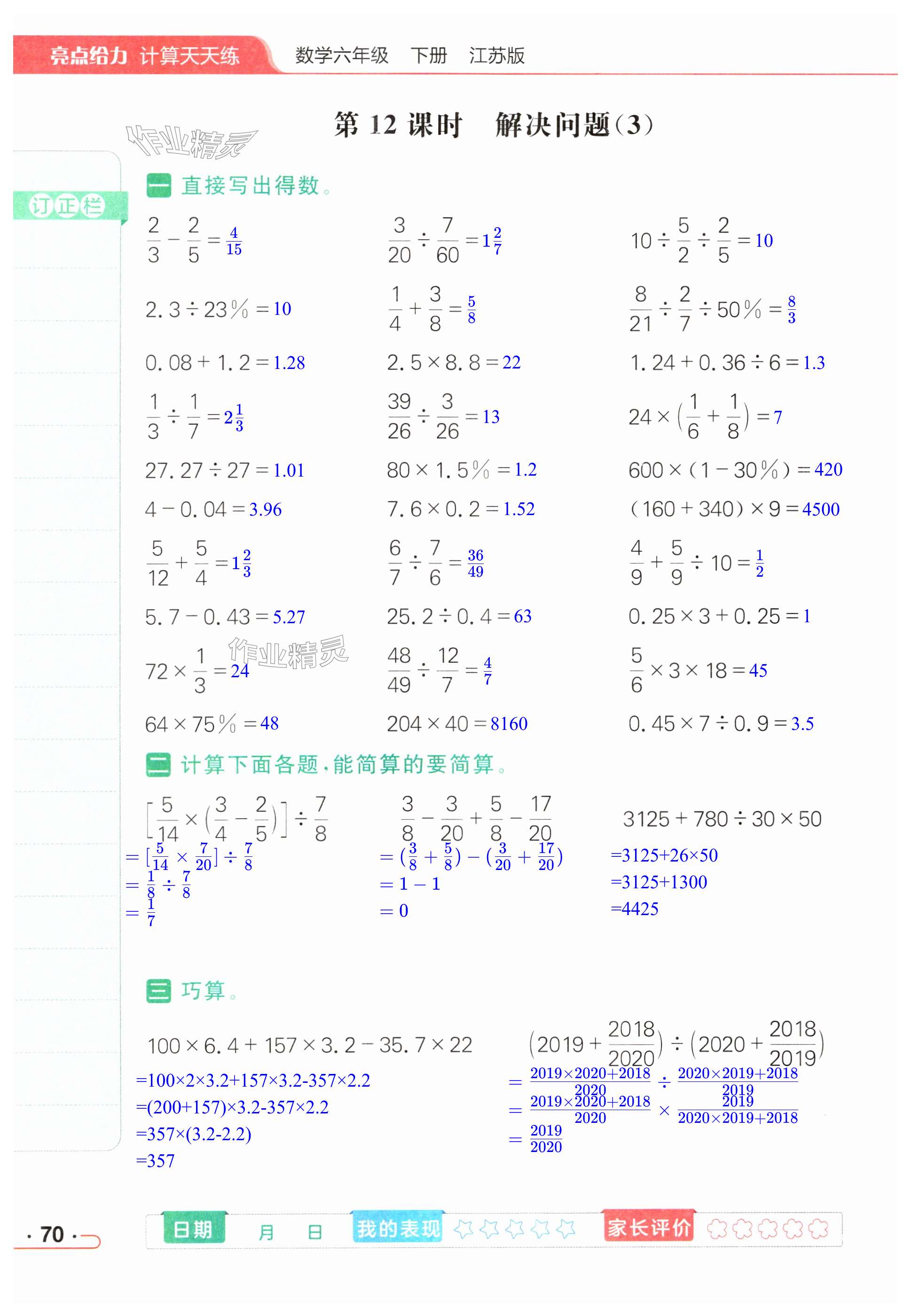 2024年亮点给力计算天天练六年级数学下册苏教版