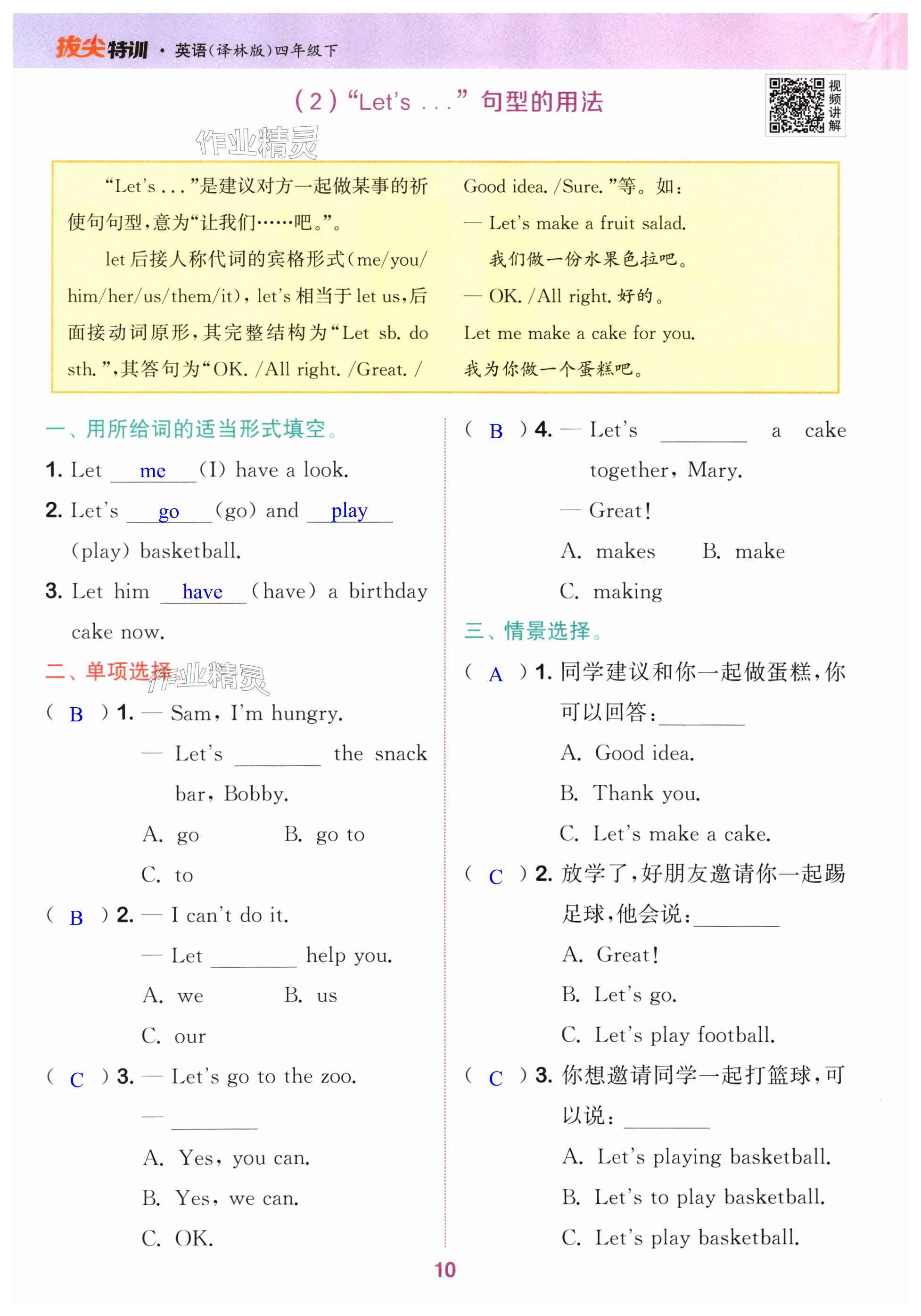 注:目前有些书本章节名称可能整理的还不是很完善,但都是按照顺序排列的,请同学们按照顺序仔细查找。练习册 2024年拔尖特训四年级英语下册译林版 答案主要是用来给同学们做完题方便对答案用的,请勿直接抄袭。