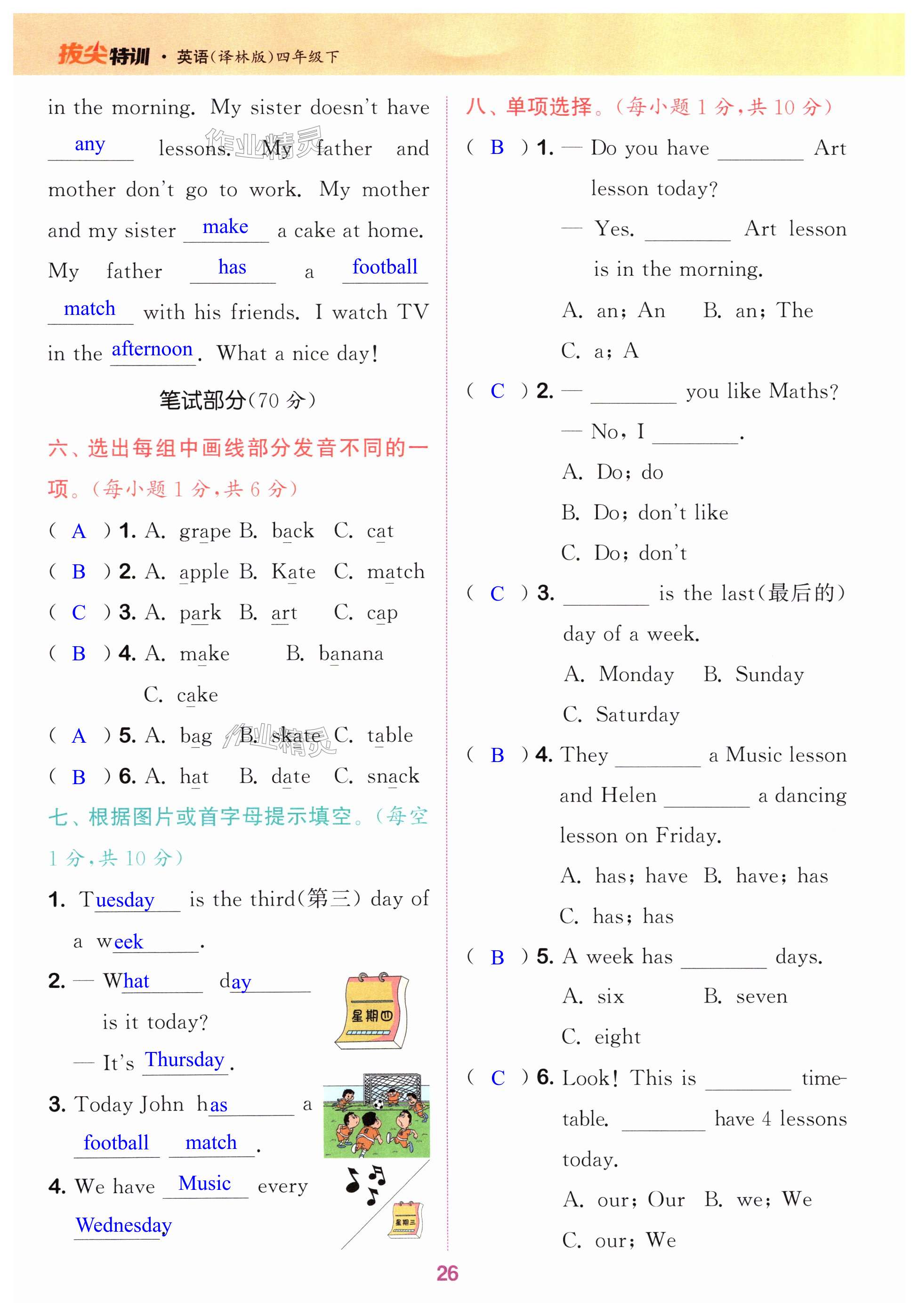 注:目前有些书本章节名称可能整理的还不是很完善,但都是按照顺序排列的,请同学们按照顺序仔细查找。练习册 2024年拔尖特训四年级英语下册译林版 答案主要是用来给同学们做完题方便对答案用的,请勿直接抄袭。