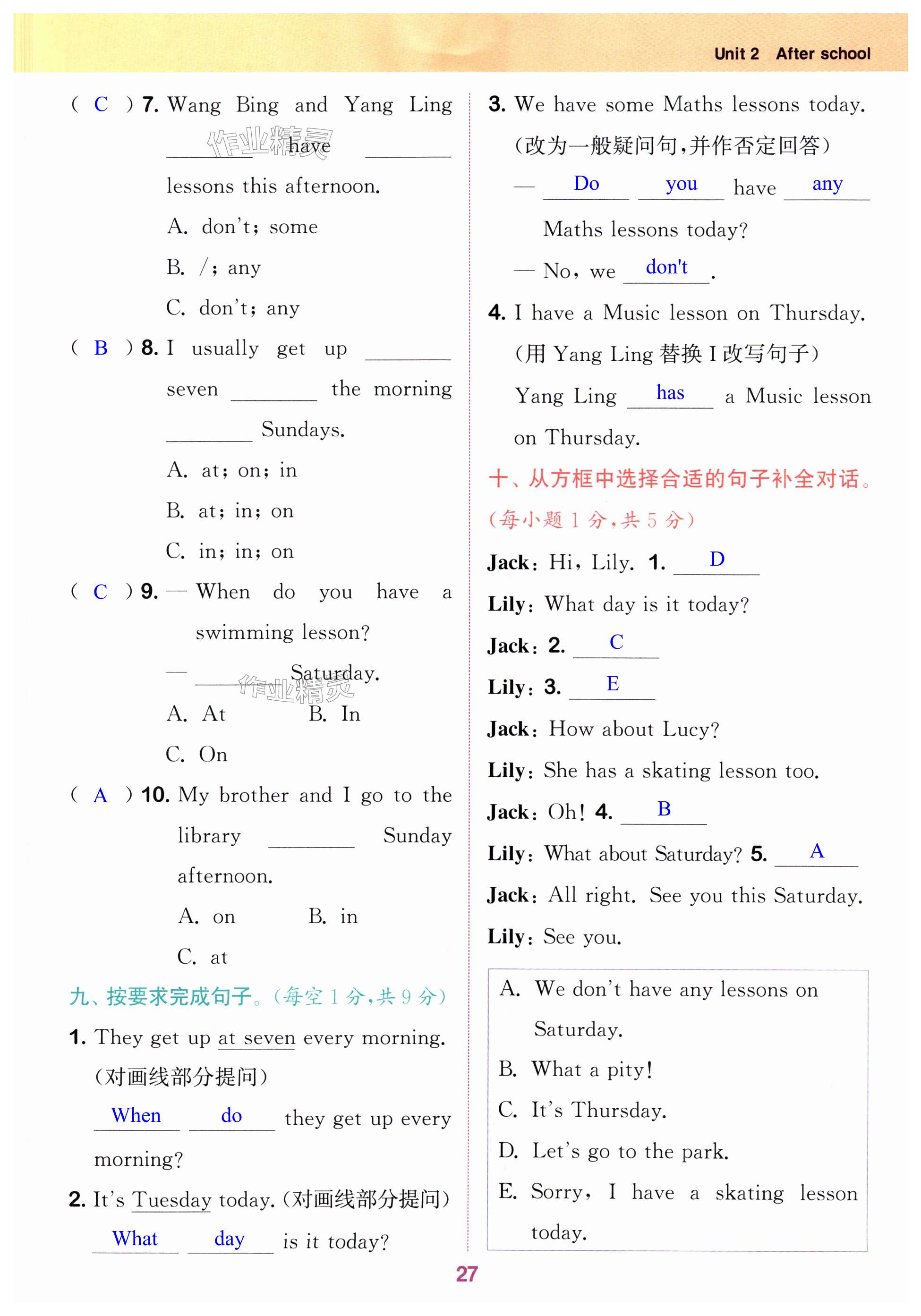 注:目前有些书本章节名称可能整理的还不是很完善,但都是按照顺序排列的,请同学们按照顺序仔细查找。练习册 2024年拔尖特训四年级英语下册译林版 答案主要是用来给同学们做完题方便对答案用的,请勿直接抄袭。