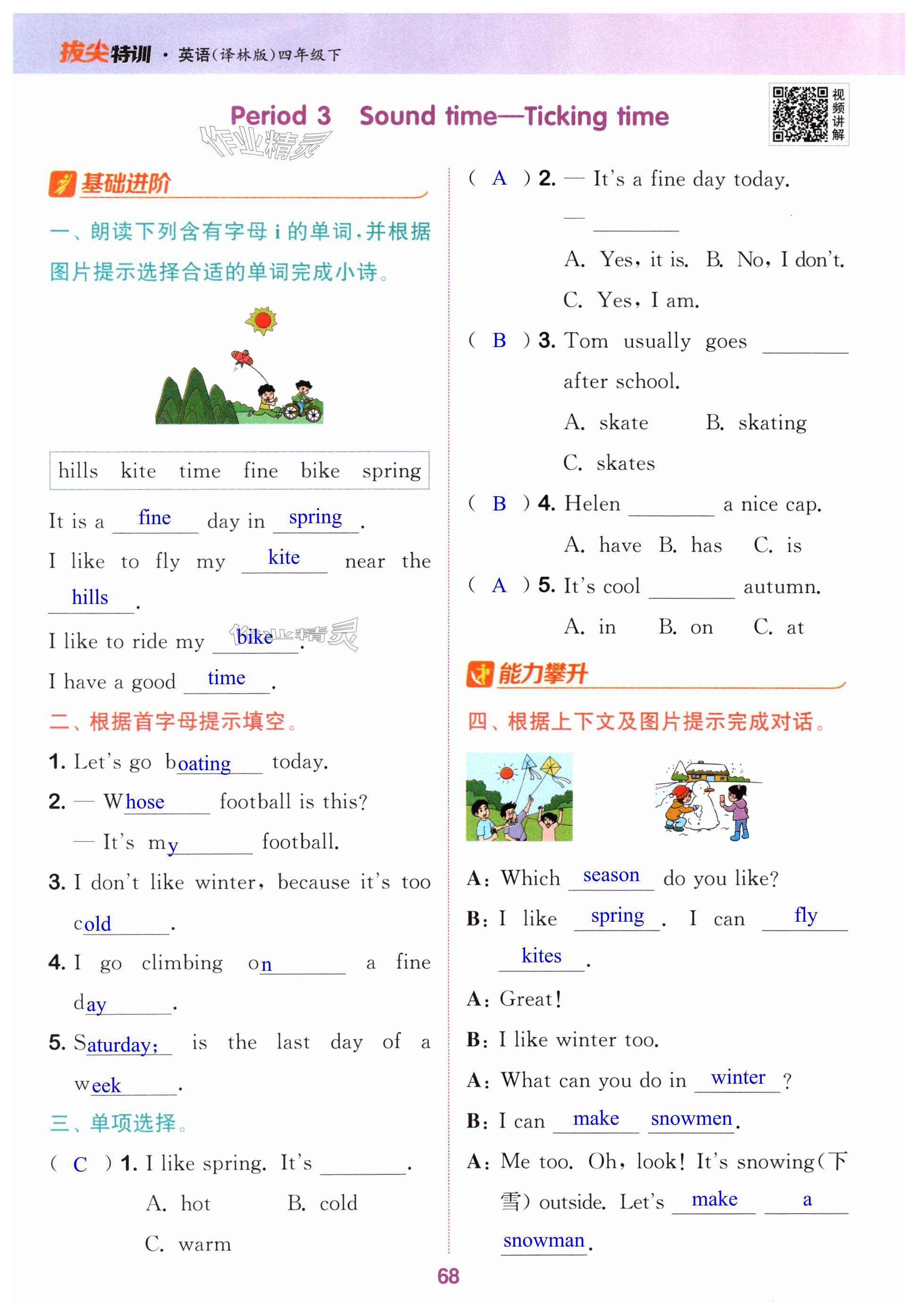 注:目前有些书本章节名称可能整理的还不是很完善,但都是按照顺序排列的,请同学们按照顺序仔细查找。练习册 2024年拔尖特训四年级英语下册译林版 答案主要是用来给同学们做完题方便对答案用的,请勿直接抄袭。
