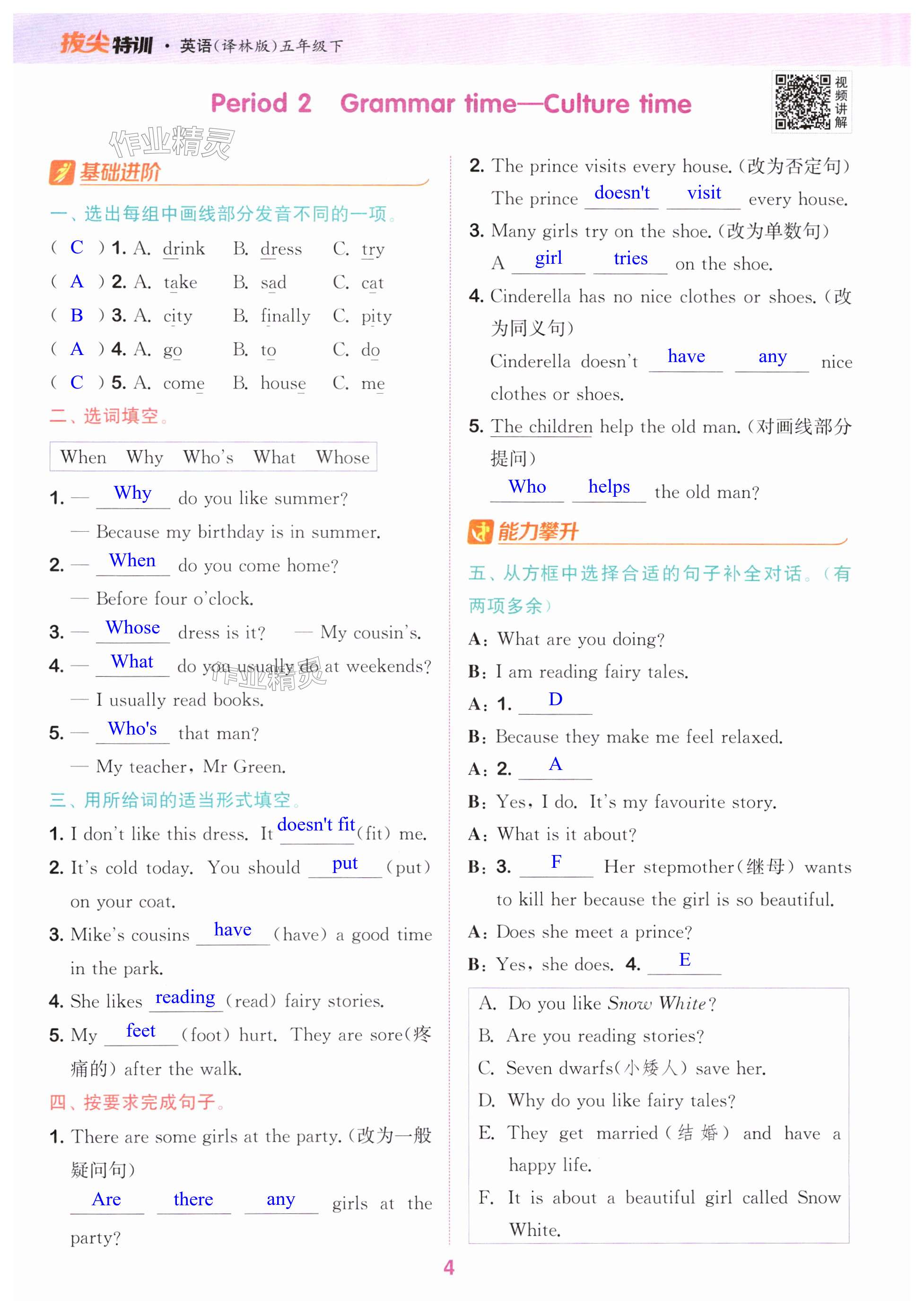 注:目前有些书本章节名称可能整理的还不是很完善,但都是按照顺序排列的,请同学们按照顺序仔细查找。练习册 2024年拔尖特训五年级英语下册译林版 答案主要是用来给同学们做完题方便对答案用的,请勿直接抄袭。