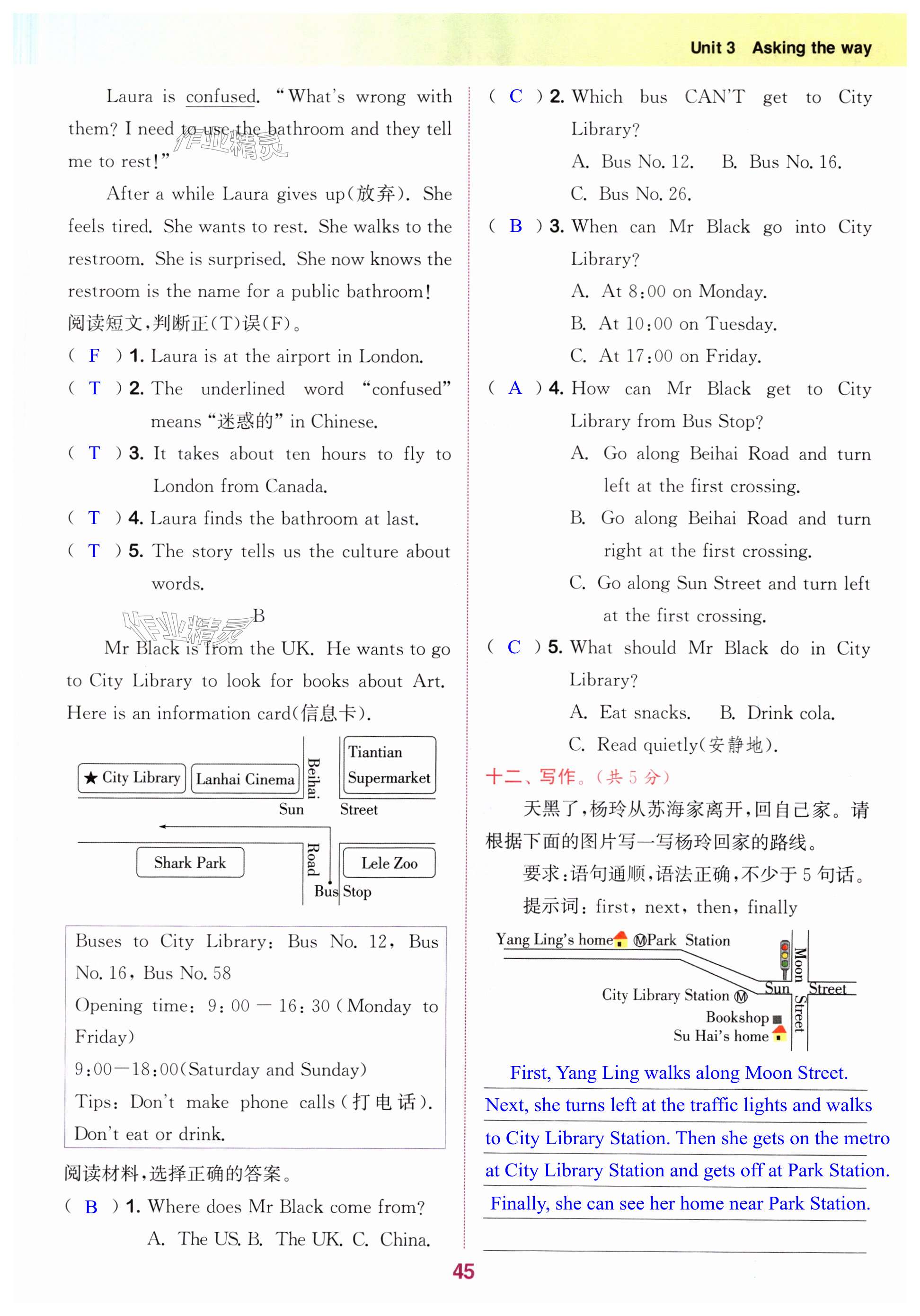 注:目前有些书本章节名称可能整理的还不是很完善,但都是按照顺序排列的,请同学们按照顺序仔细查找。练习册 2024年拔尖特训五年级英语下册译林版 答案主要是用来给同学们做完题方便对答案用的,请勿直接抄袭。