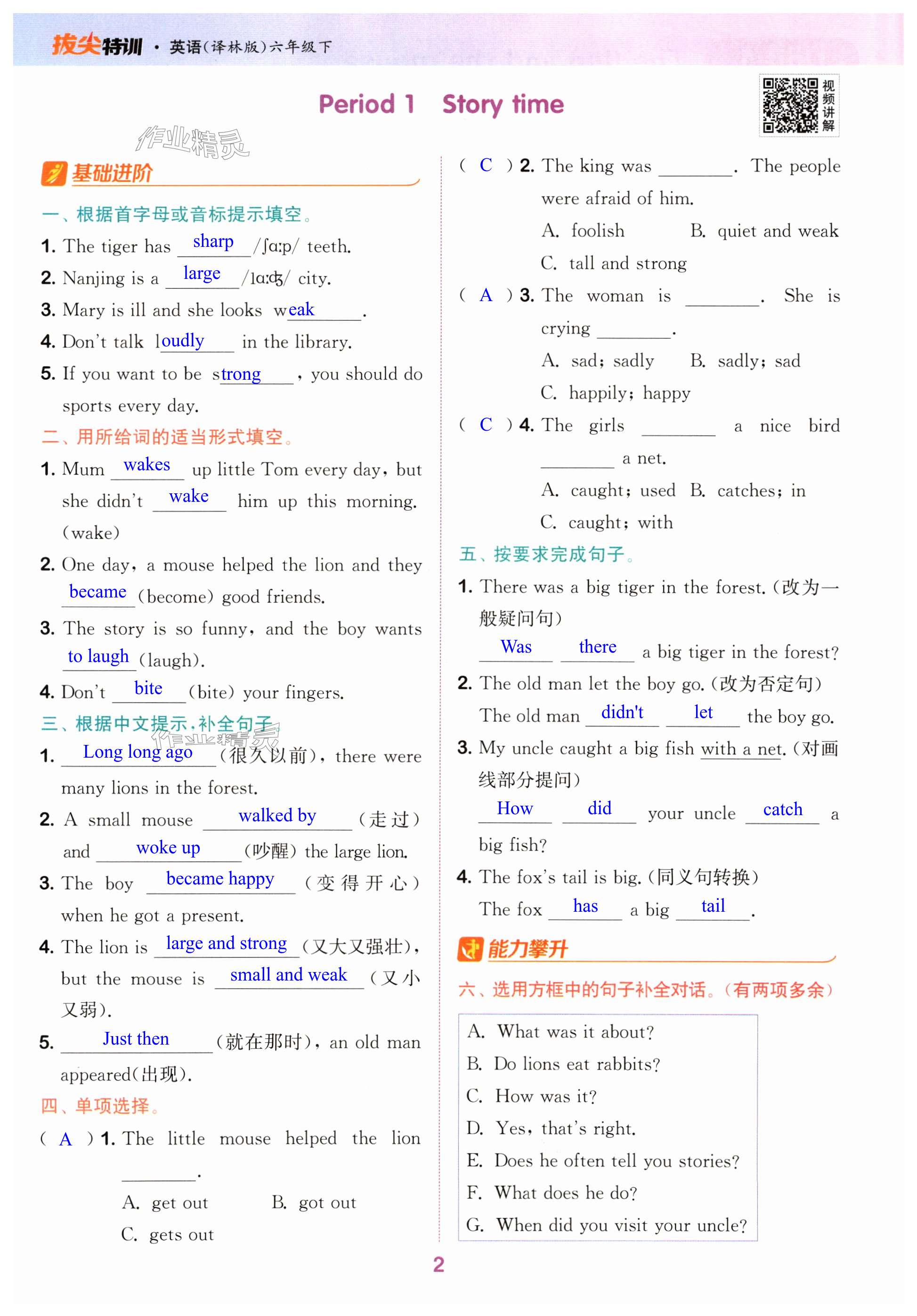 注:目前有些书本章节名称可能整理的还不是很完善,但都是按照顺序排列的,请同学们按照顺序仔细查找。练习册 2024年拔尖特训六年级英语下册译林版 答案主要是用来给同学们做完题方便对答案用的,请勿直接抄袭。
