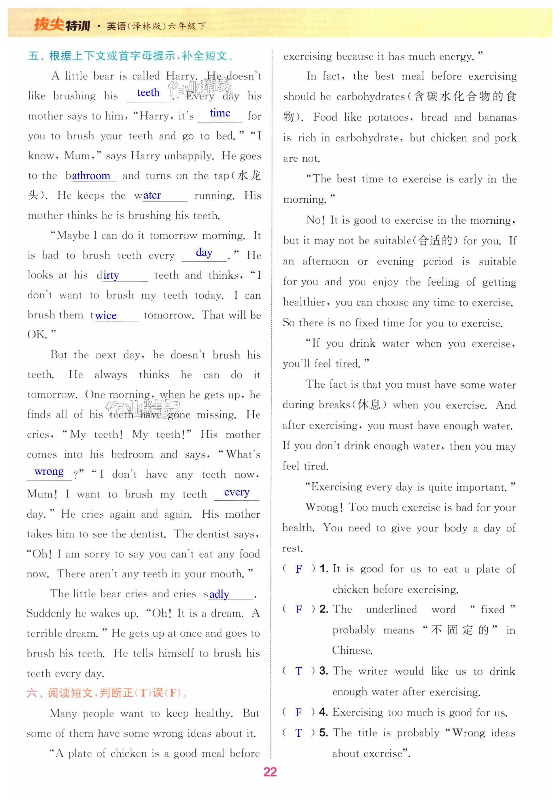 注:目前有些书本章节名称可能整理的还不是很完善,但都是按照顺序排列的,请同学们按照顺序仔细查找。练习册 2024年拔尖特训六年级英语下册译林版 答案主要是用来给同学们做完题方便对答案用的,请勿直接抄袭。