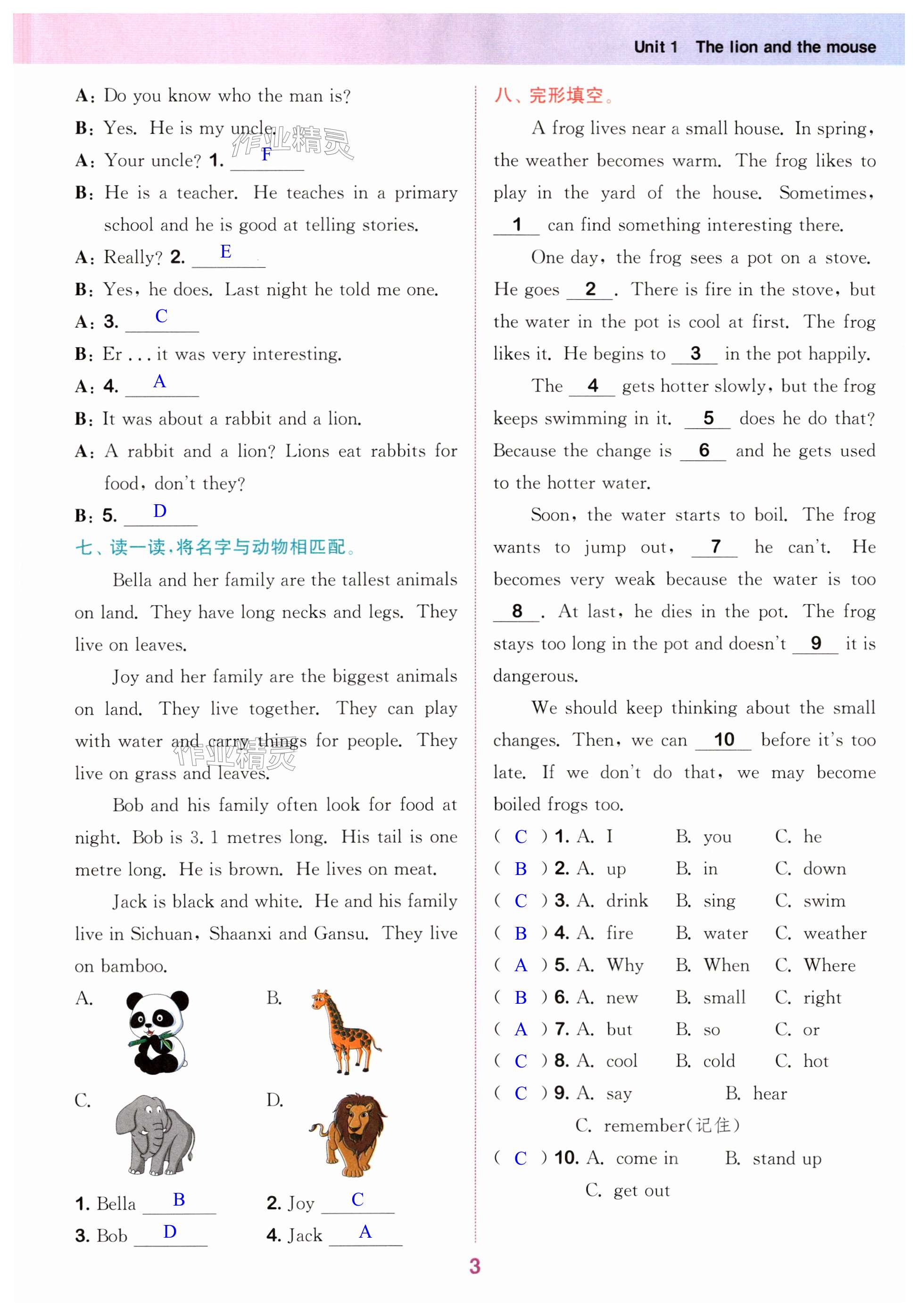 注:目前有些书本章节名称可能整理的还不是很完善,但都是按照顺序排列的,请同学们按照顺序仔细查找。练习册 2024年拔尖特训六年级英语下册译林版 答案主要是用来给同学们做完题方便对答案用的,请勿直接抄袭。