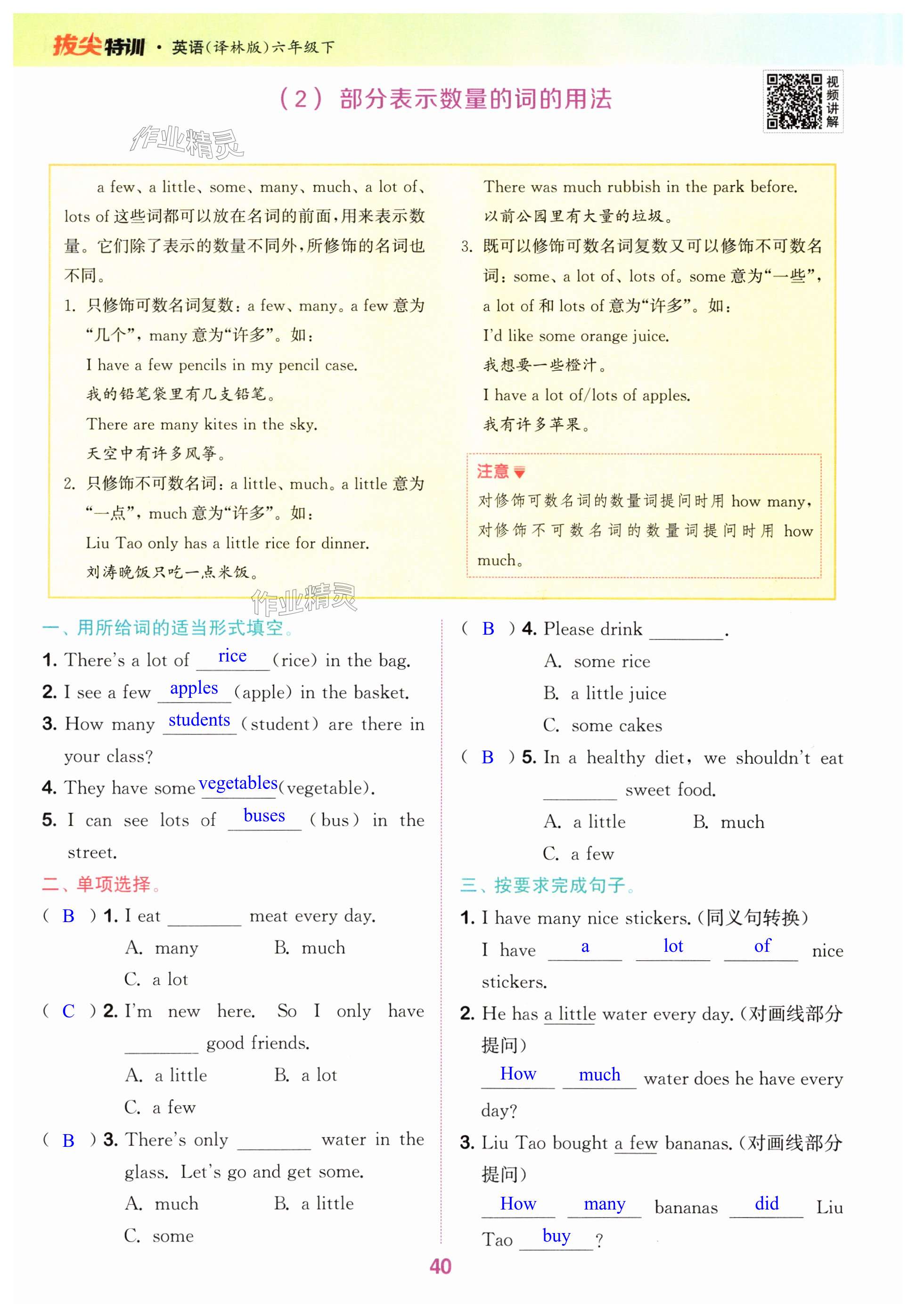 注:目前有些书本章节名称可能整理的还不是很完善,但都是按照顺序排列的,请同学们按照顺序仔细查找。练习册 2024年拔尖特训六年级英语下册译林版 答案主要是用来给同学们做完题方便对答案用的,请勿直接抄袭。