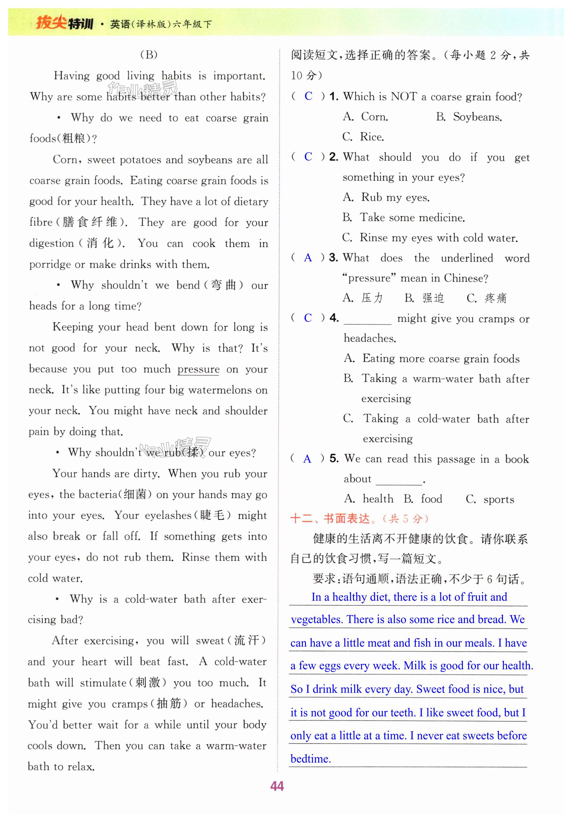注:目前有些书本章节名称可能整理的还不是很完善,但都是按照顺序排列的,请同学们按照顺序仔细查找。练习册 2024年拔尖特训六年级英语下册译林版 答案主要是用来给同学们做完题方便对答案用的,请勿直接抄袭。