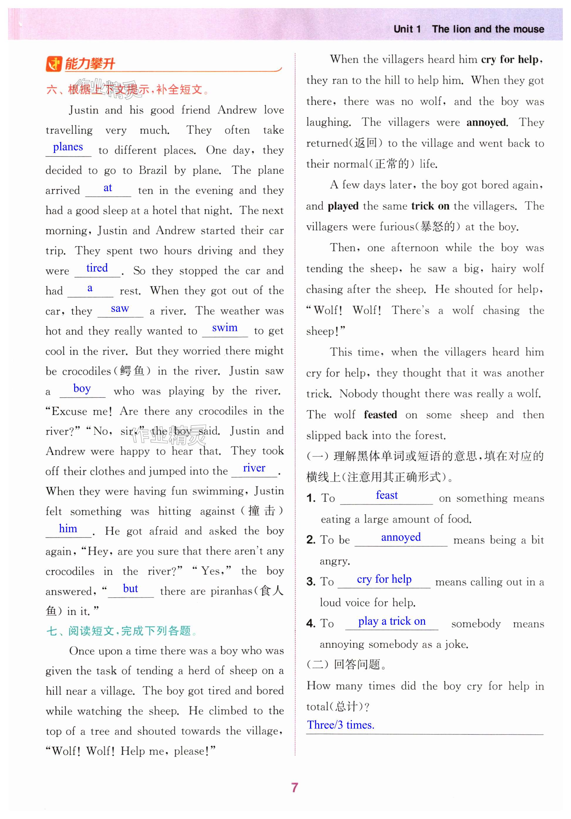 注:目前有些书本章节名称可能整理的还不是很完善,但都是按照顺序排列的,请同学们按照顺序仔细查找。练习册 2024年拔尖特训六年级英语下册译林版 答案主要是用来给同学们做完题方便对答案用的,请勿直接抄袭。
