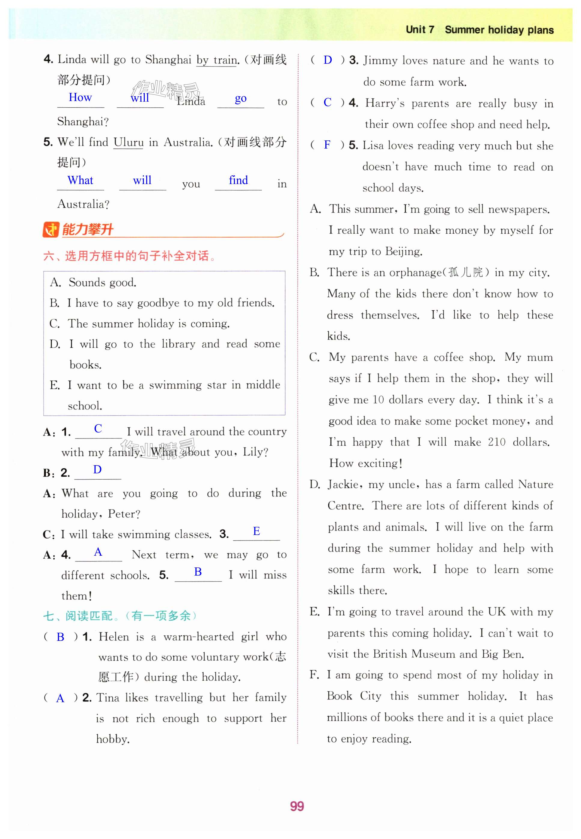 注:目前有些书本章节名称可能整理的还不是很完善,但都是按照顺序排列的,请同学们按照顺序仔细查找。练习册 2024年拔尖特训六年级英语下册译林版 答案主要是用来给同学们做完题方便对答案用的,请勿直接抄袭。