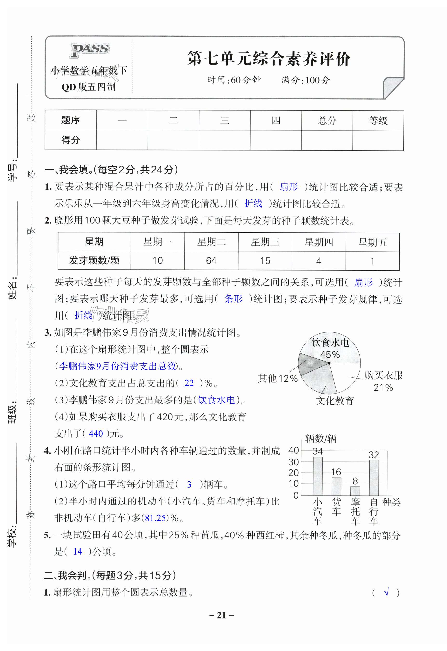 注:目前有些书本章节名称可能整理的还不是很完善,但都是按照顺序排列的,请同学们按照顺序仔细查找。练习册 2024年小学学霸作业本五年级数学下册青岛版54制 答案主要是用来给同学们做完题方便对答案用的,请勿直接抄袭。
