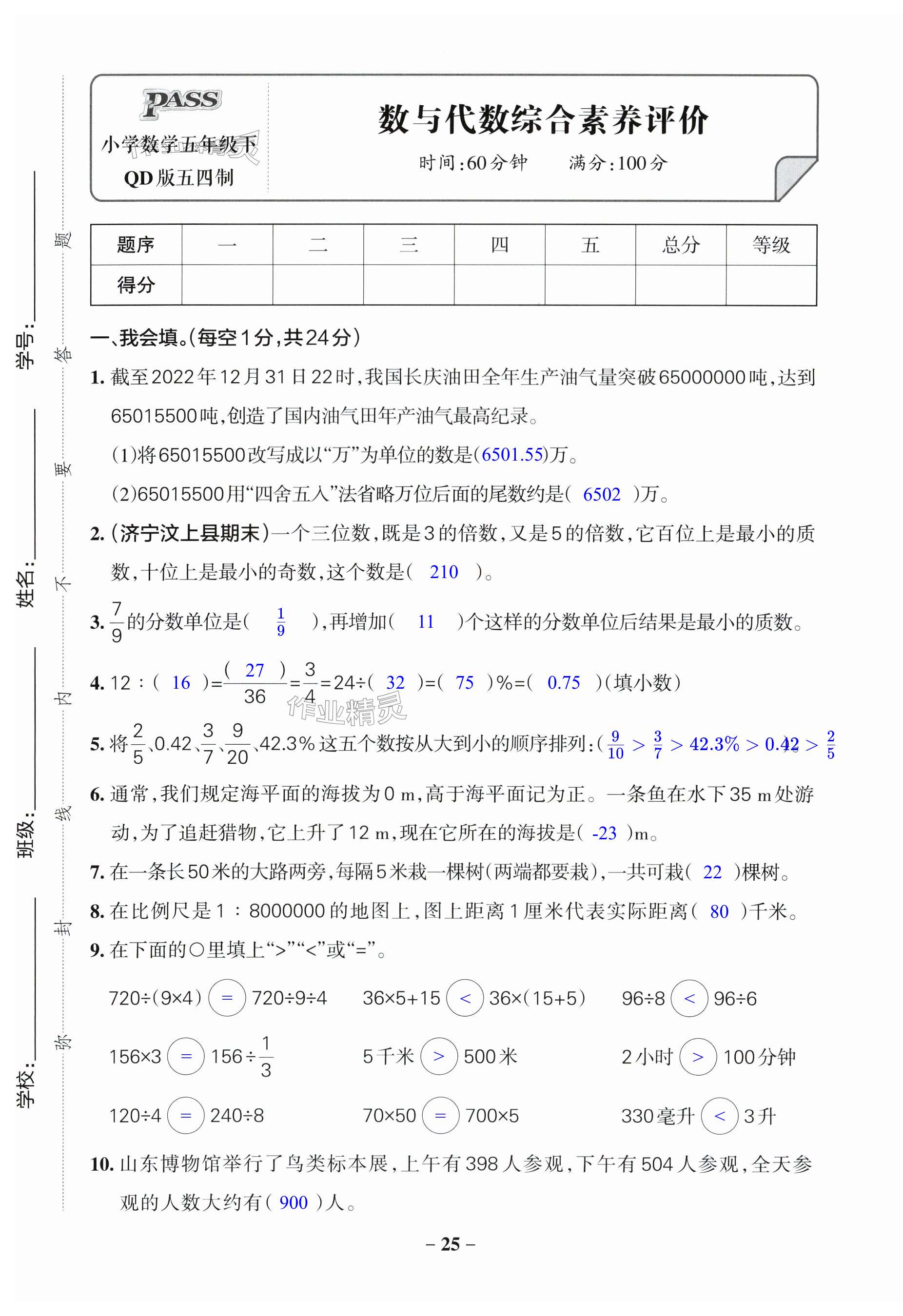 注:目前有些书本章节名称可能整理的还不是很完善,但都是按照顺序排列的,请同学们按照顺序仔细查找。练习册 2024年小学学霸作业本五年级数学下册青岛版54制 答案主要是用来给同学们做完题方便对答案用的,请勿直接抄袭。
