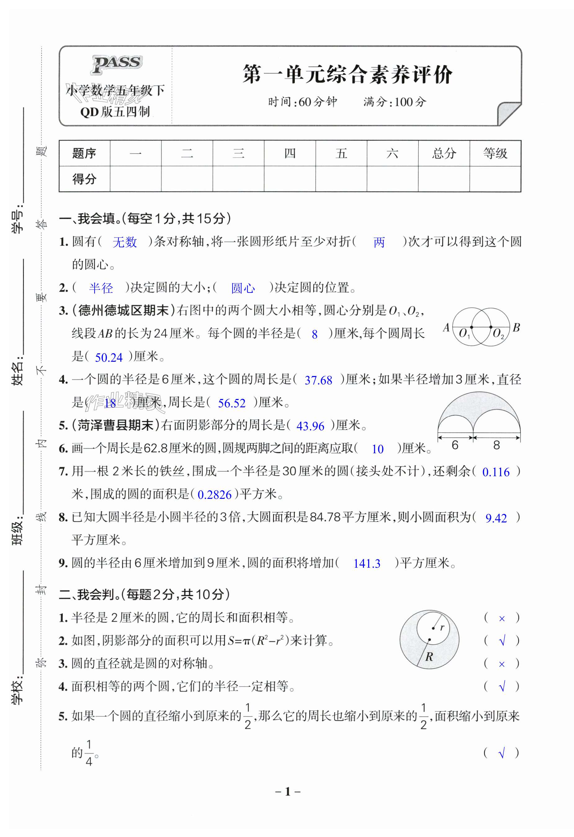注:目前有些书本章节名称可能整理的还不是很完善,但都是按照顺序排列的,请同学们按照顺序仔细查找。练习册 2024年小学学霸作业本五年级数学下册青岛版54制 答案主要是用来给同学们做完题方便对答案用的,请勿直接抄袭。
