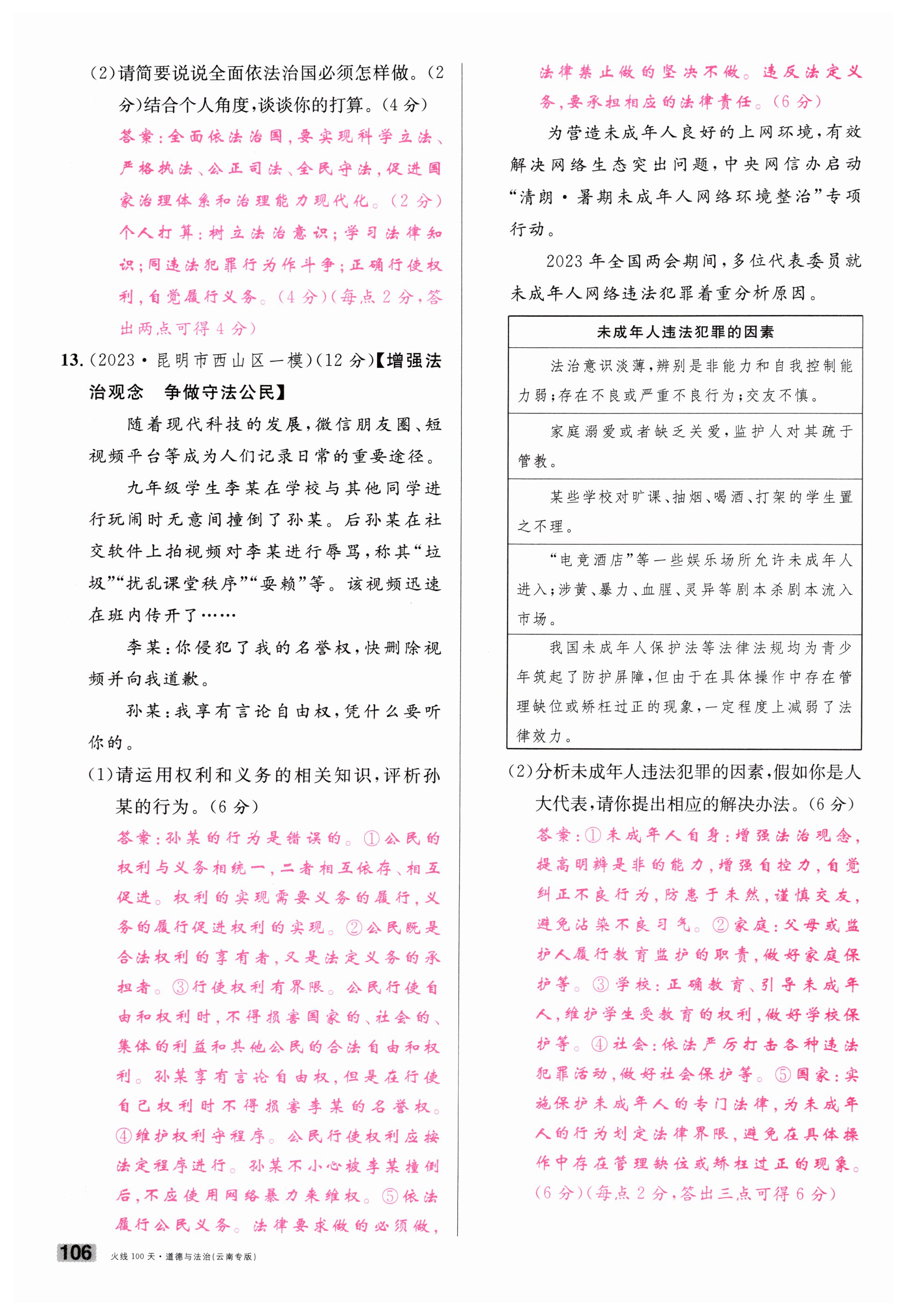 2024年火线100天中考滚动复习法道德与法治云南专版