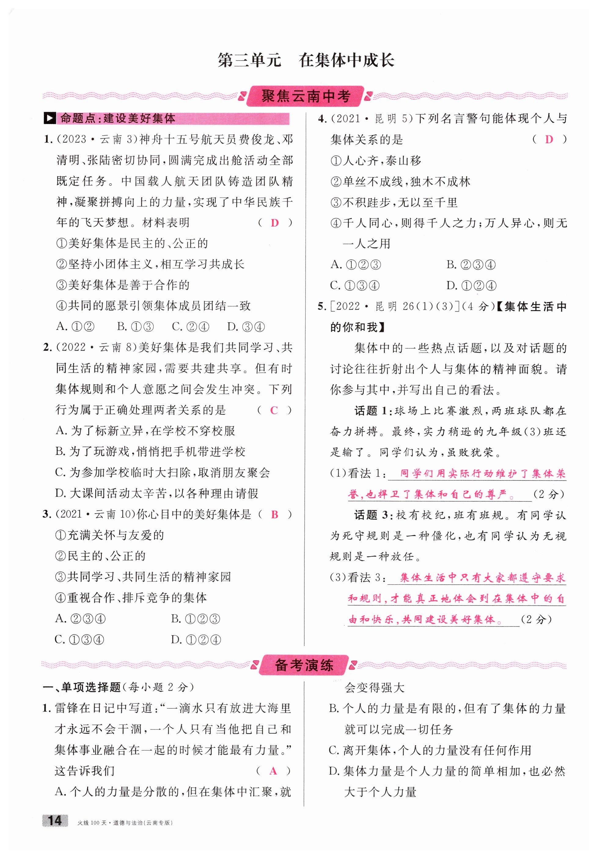 注:目前有些书本章节名称可能整理的还不是很完善,但都是按照顺序排列的,请同学们按照顺序仔细查找。练习册 2024年火线100天中考滚动复习法道德与法治云南专版 答案主要是用来给同学们做完题方便对答案用的,请勿直接抄袭。