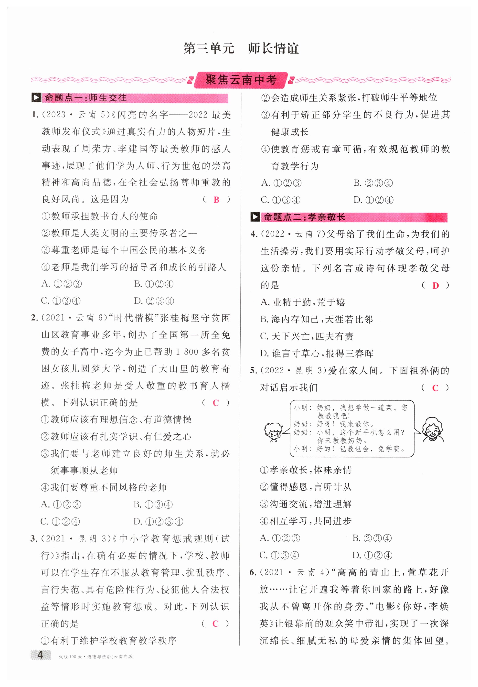 注:目前有些书本章节名称可能整理的还不是很完善,但都是按照顺序排列的,请同学们按照顺序仔细查找。练习册 2024年火线100天中考滚动复习法道德与法治云南专版 答案主要是用来给同学们做完题方便对答案用的,请勿直接抄袭。