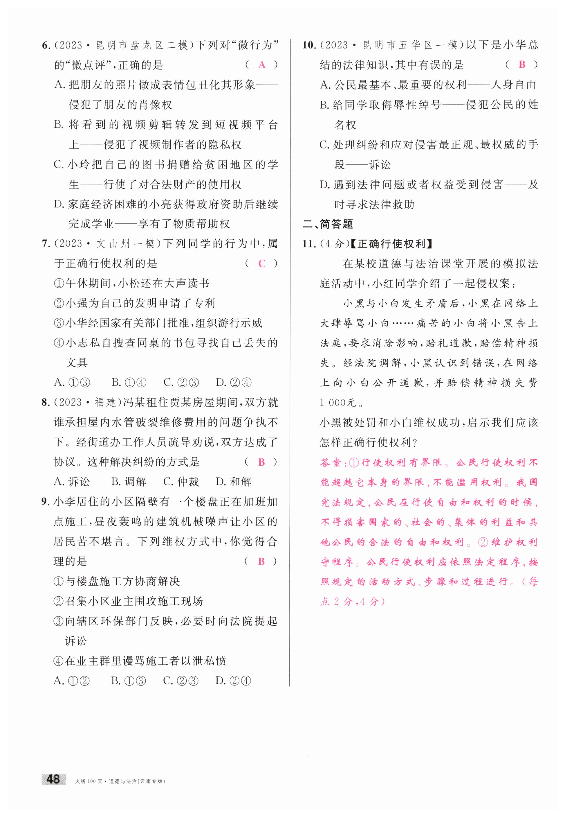 注:目前有些书本章节名称可能整理的还不是很完善,但都是按照顺序排列的,请同学们按照顺序仔细查找。练习册 2024年火线100天中考滚动复习法道德与法治云南专版 答案主要是用来给同学们做完题方便对答案用的,请勿直接抄袭。