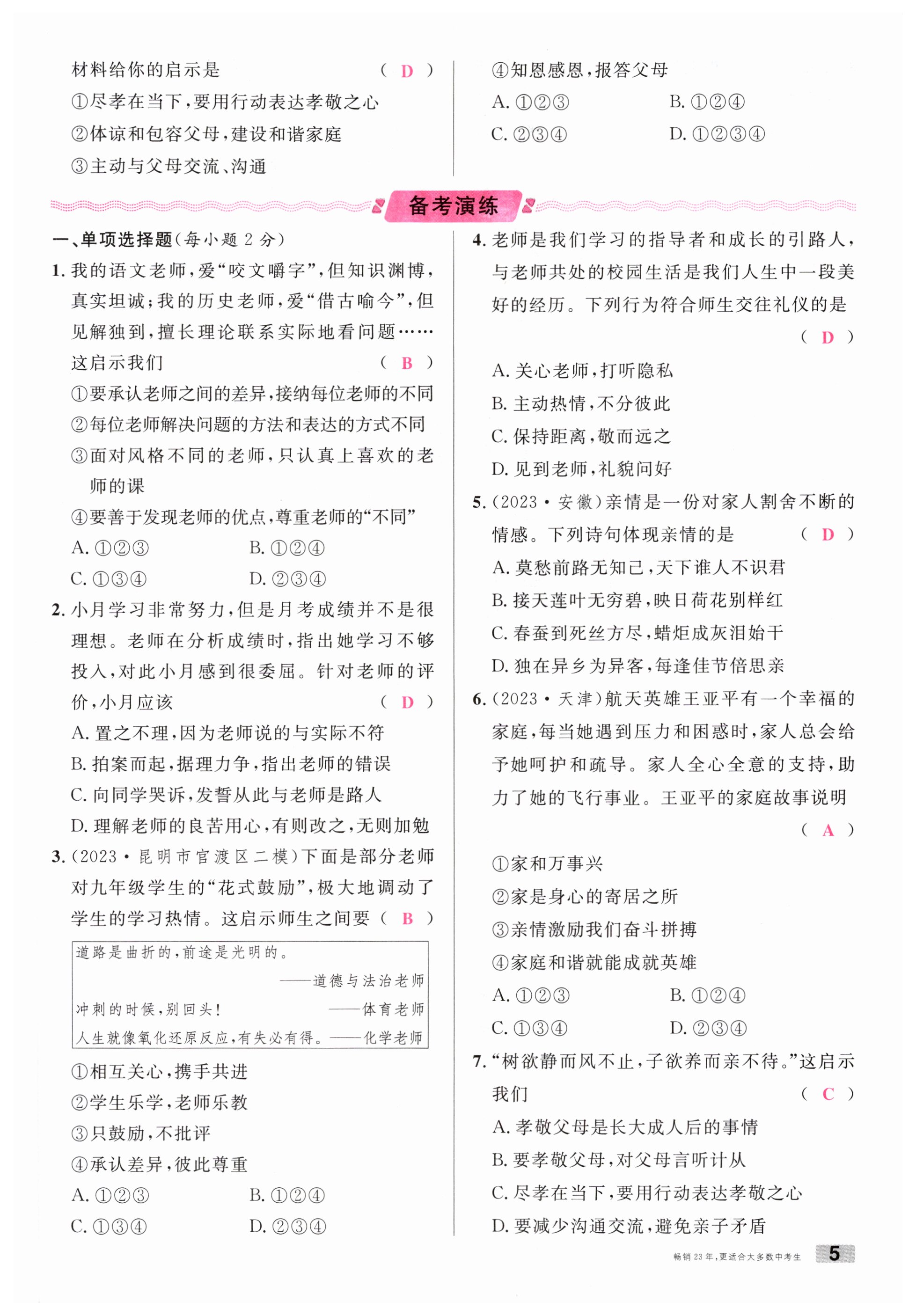 注:目前有些书本章节名称可能整理的还不是很完善,但都是按照顺序排列的,请同学们按照顺序仔细查找。练习册 2024年火线100天中考滚动复习法道德与法治云南专版 答案主要是用来给同学们做完题方便对答案用的,请勿直接抄袭。