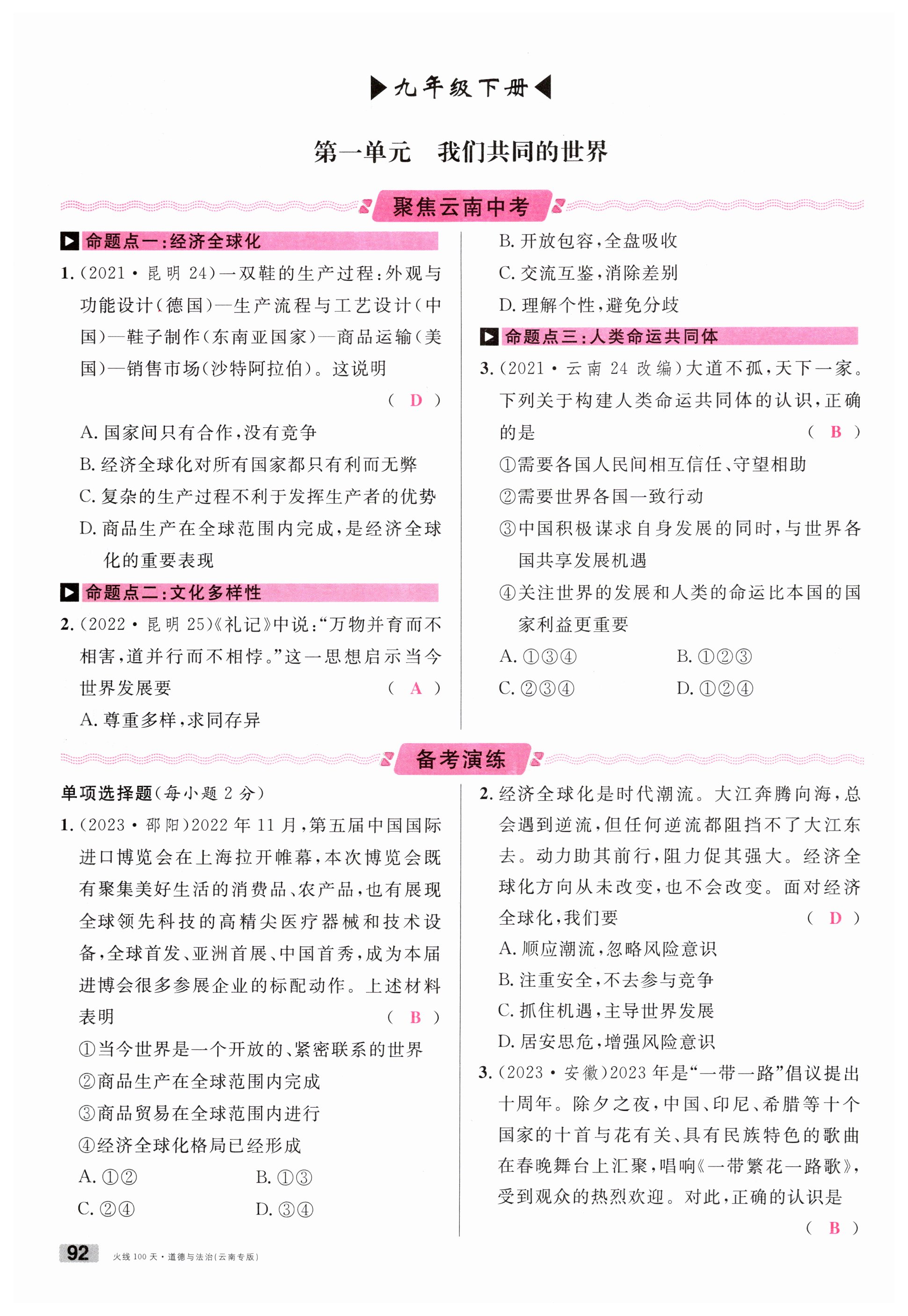 注:目前有些书本章节名称可能整理的还不是很完善,但都是按照顺序排列的,请同学们按照顺序仔细查找。练习册 2024年火线100天中考滚动复习法道德与法治云南专版 答案主要是用来给同学们做完题方便对答案用的,请勿直接抄袭。