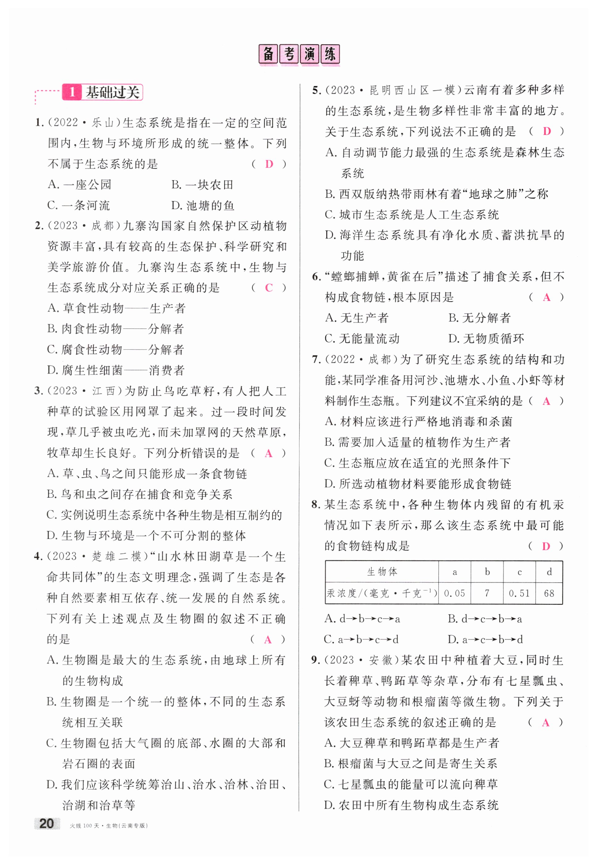 注:目前有些书本章节名称可能整理的还不是很完善,但都是按照顺序排列的,请同学们按照顺序仔细查找。练习册 2024年火线100天中考滚动复习法生物云南专版 答案主要是用来给同学们做完题方便对答案用的,请勿直接抄袭。