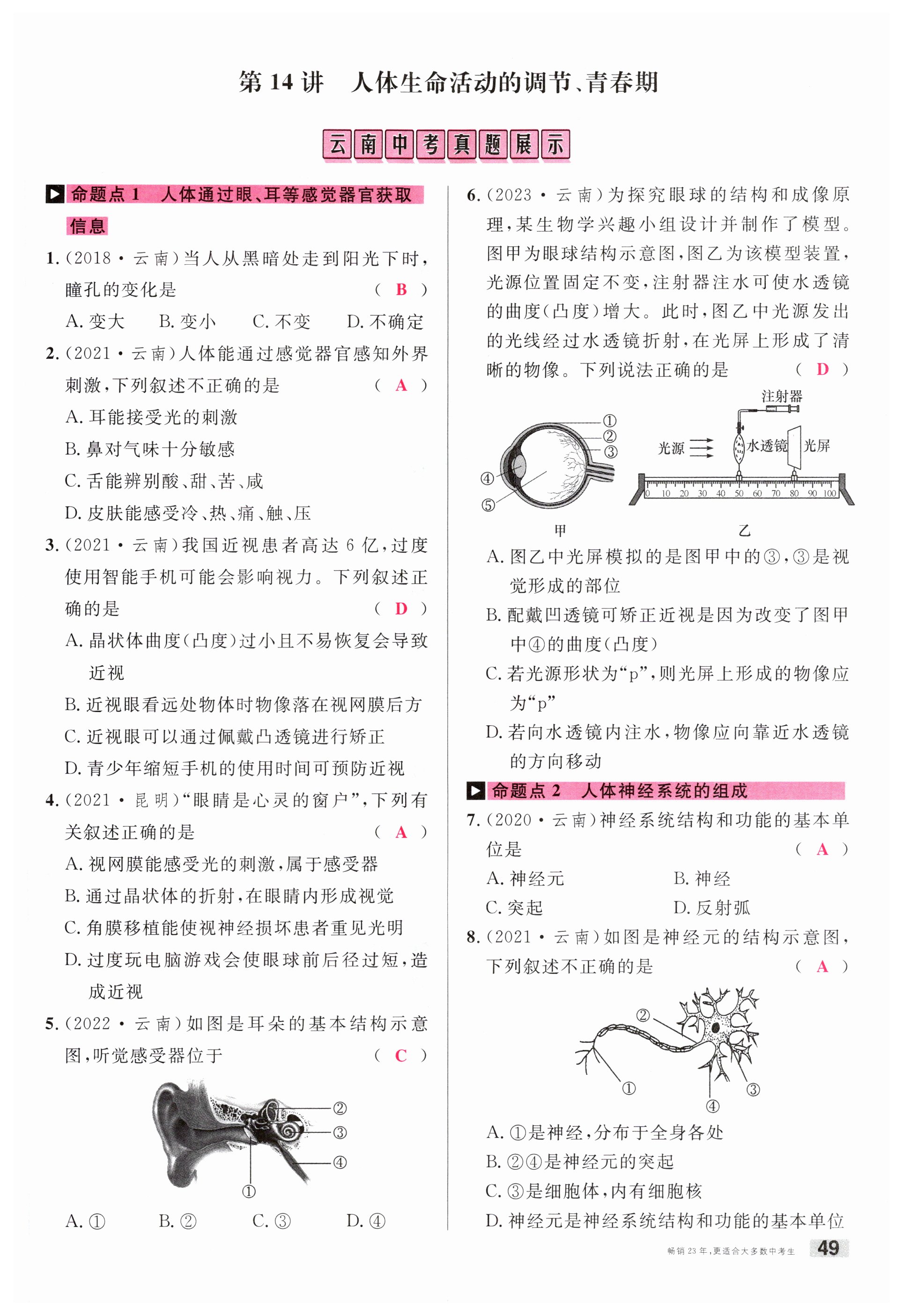 注:目前有些书本章节名称可能整理的还不是很完善,但都是按照顺序排列的,请同学们按照顺序仔细查找。练习册 2024年火线100天中考滚动复习法生物云南专版 答案主要是用来给同学们做完题方便对答案用的,请勿直接抄袭。