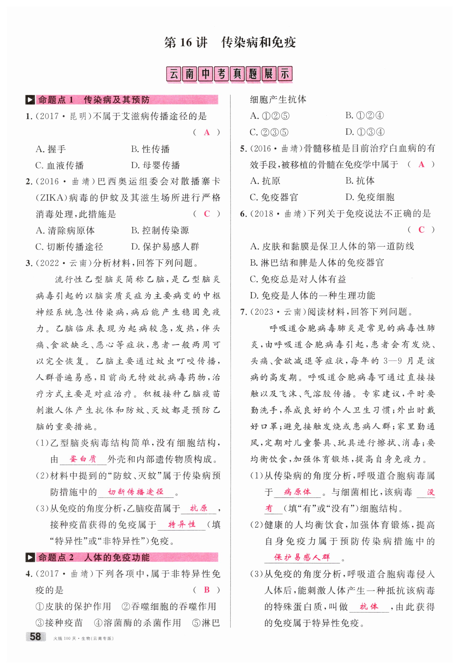 注:目前有些书本章节名称可能整理的还不是很完善,但都是按照顺序排列的,请同学们按照顺序仔细查找。练习册 2024年火线100天中考滚动复习法生物云南专版 答案主要是用来给同学们做完题方便对答案用的,请勿直接抄袭。